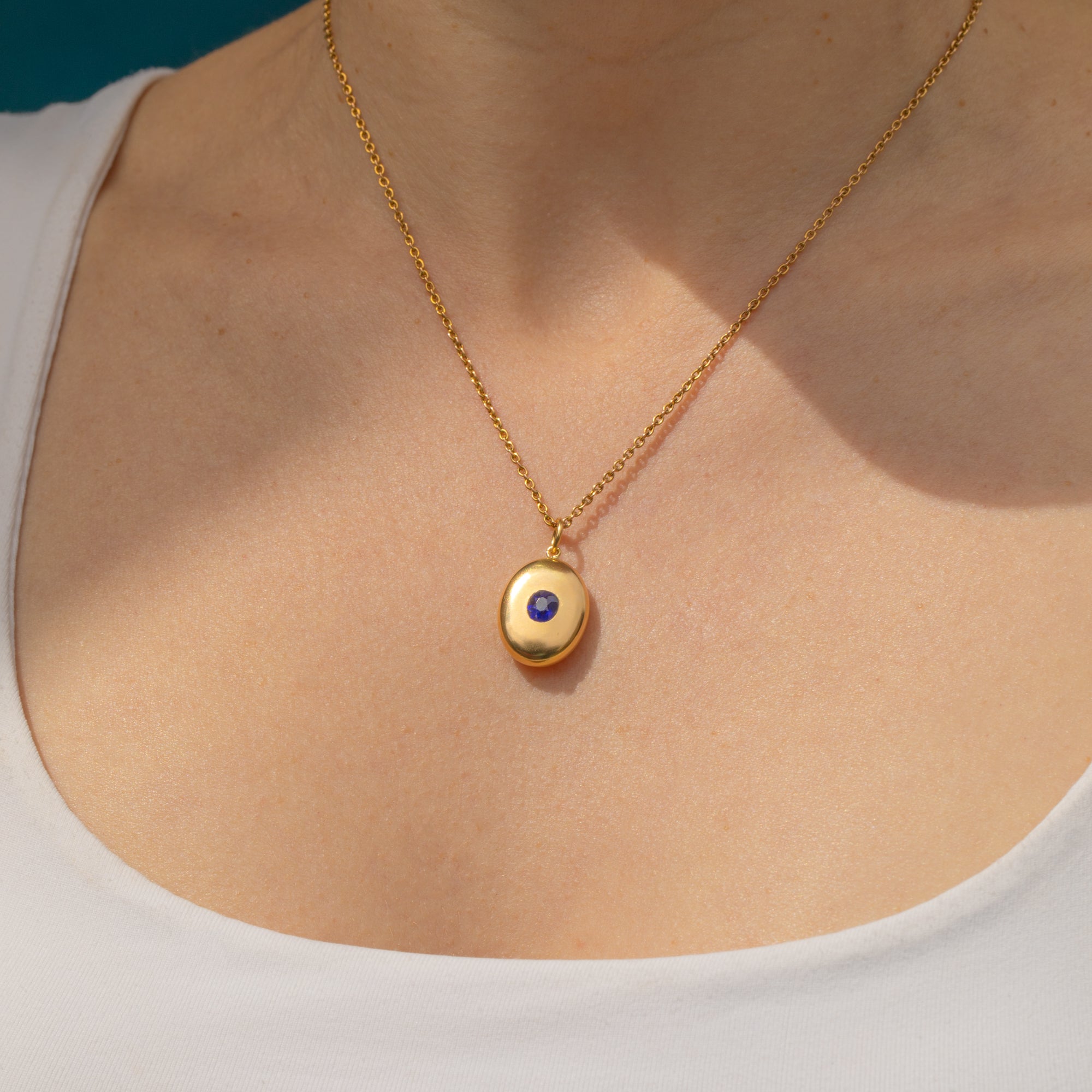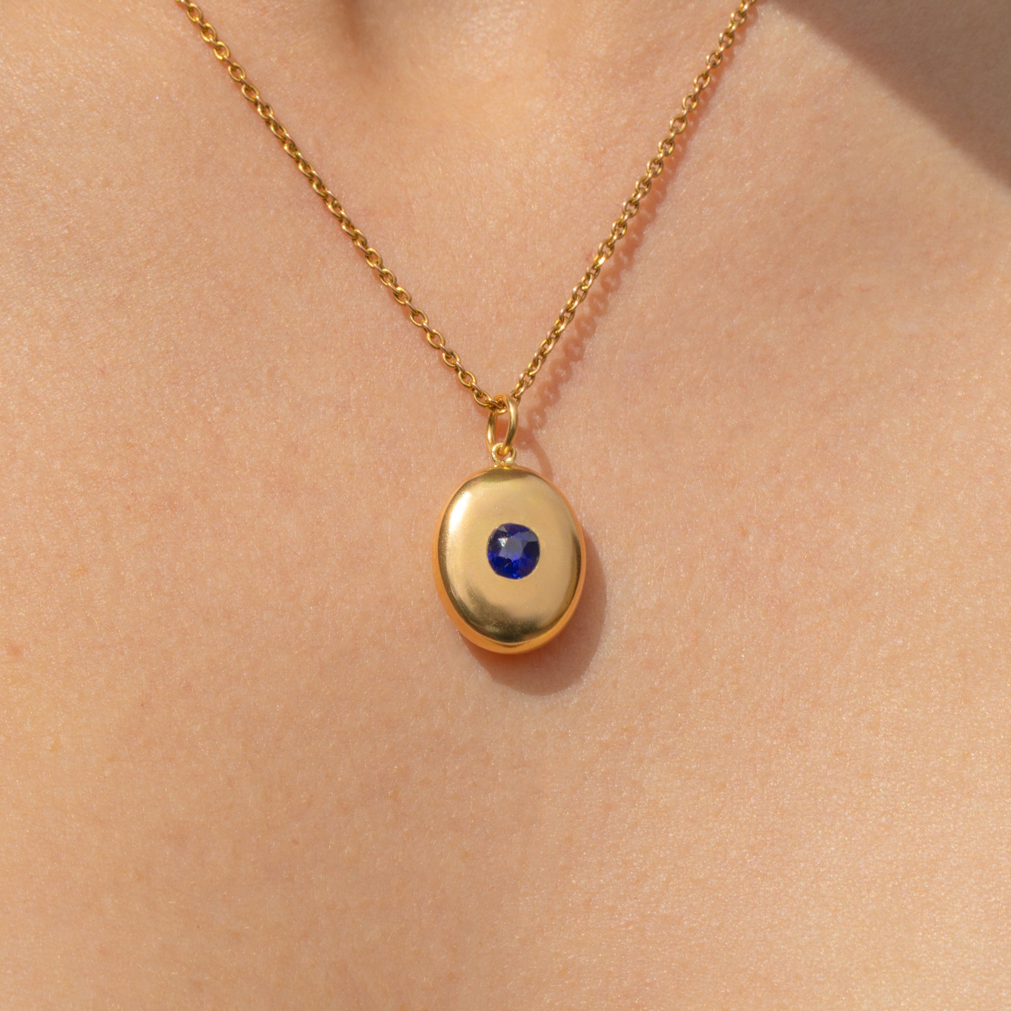 Her glistening Sapphire is encompassed by a halo of buttery 18ct Gold with a curvaceous and puffy form that sits comfortably upon your chest. Born in the 19th century, this Victorian Sapphire pendant possesses a timeless appeal, you are bound to be reaching for her time and time again.