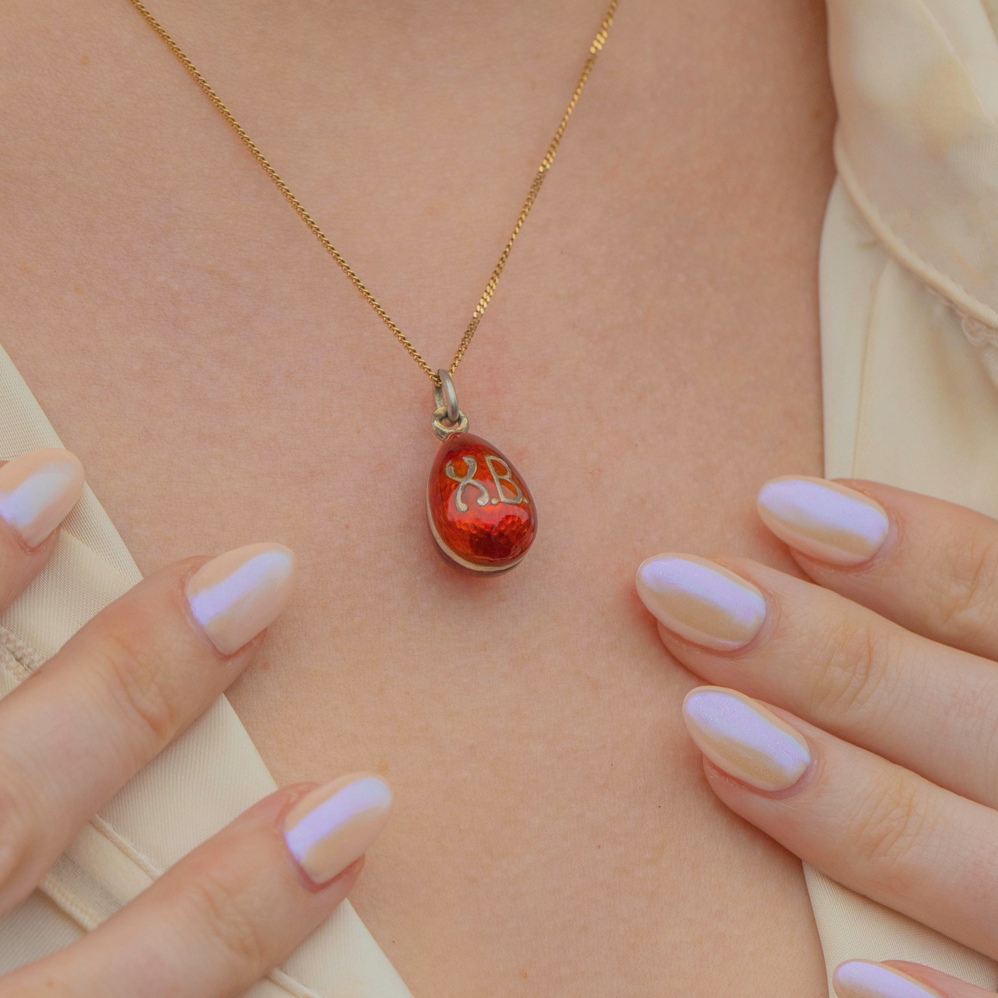 A splendid antique red Enamel egg pendant! Crafted from Sterling Silver and inliad with the most gorgeous rich Red Enamel, this faberge style egg is sure to set your jewellery collection apart from the crowd.