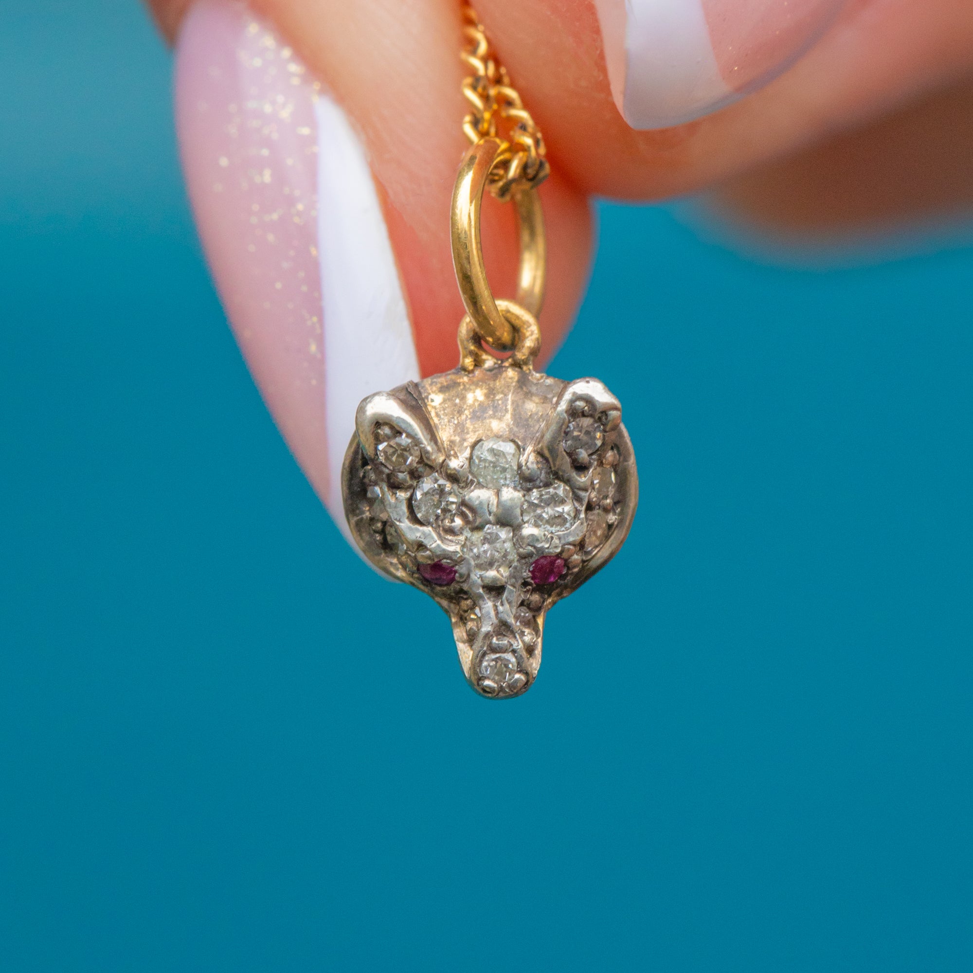 We love this cheeky antique Silver Diamond fox head charm - featuring a Diamond-encrusted surface and accented with two dinky Rubies, she's such a delight!