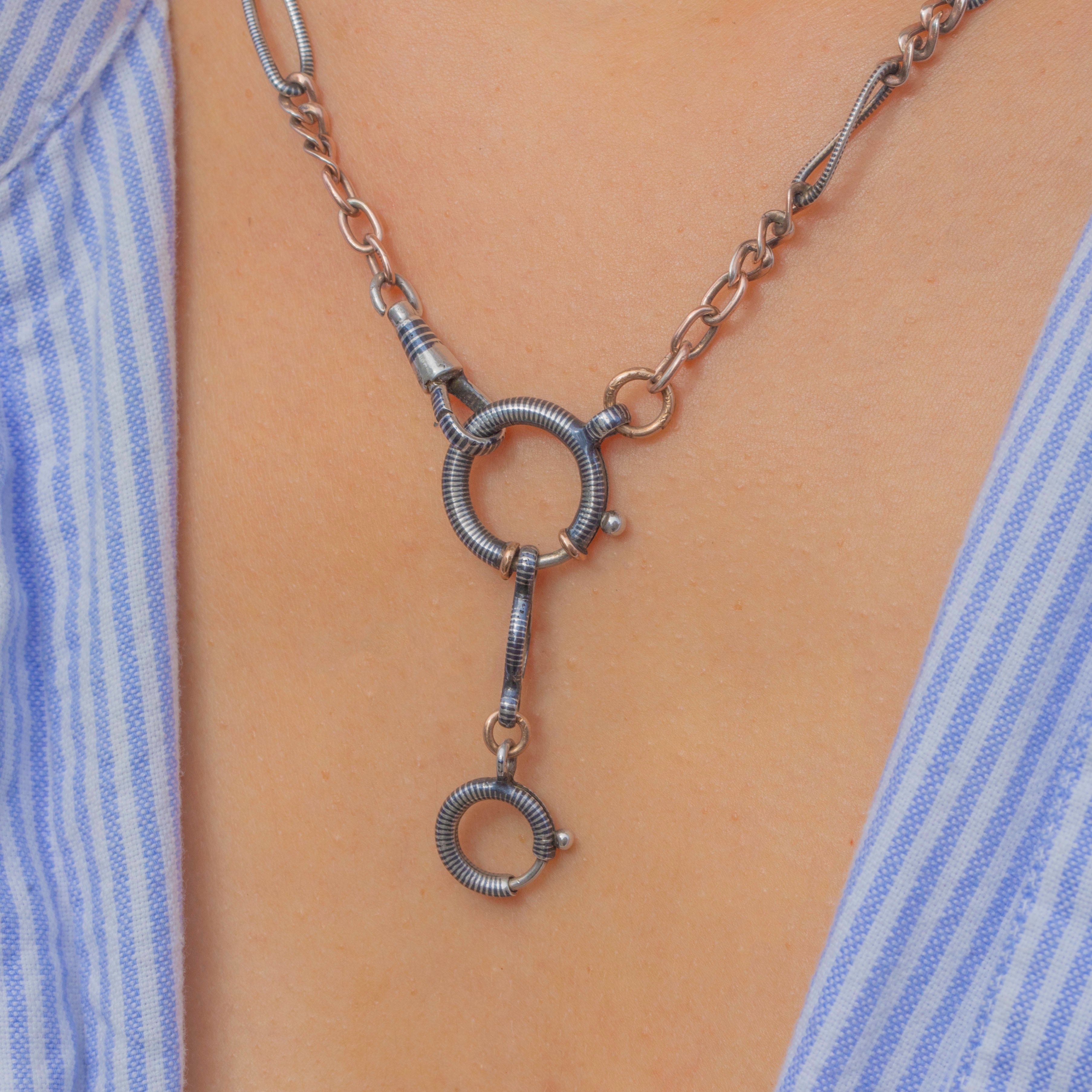 18" Antique Silver Niello Chain with Large Bolt-Ring & Small Drop Charm Holder