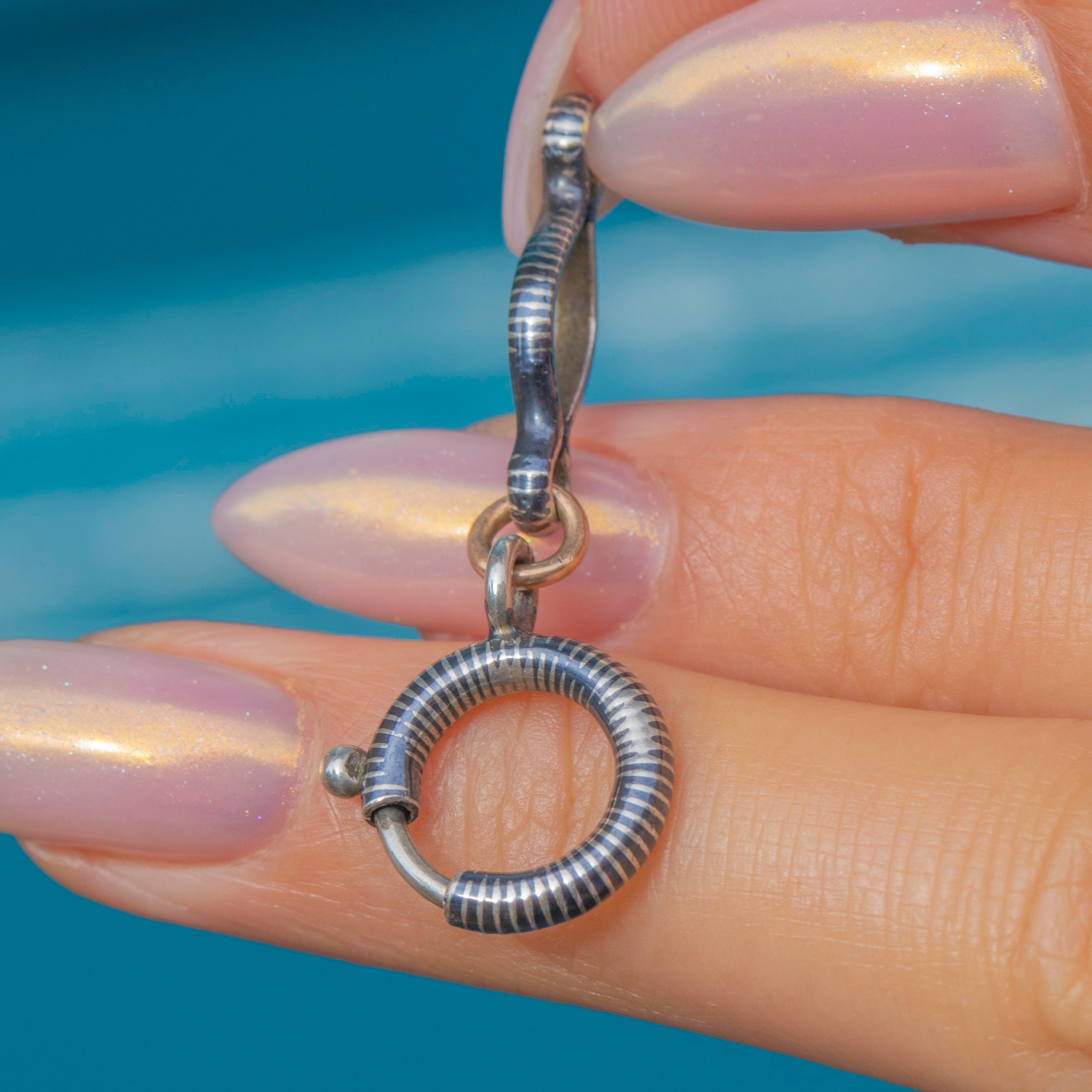 The chain’s polished silver contrasts beautifully with the 9ct Gold and dark Niello, giving it a bold yet elegant appearance. Measuring 18" at full length, it drapes gracefully and can be shortened by using the removable bolt ring, making it perfect for displaying charms or wearing as a statement piece on its own.