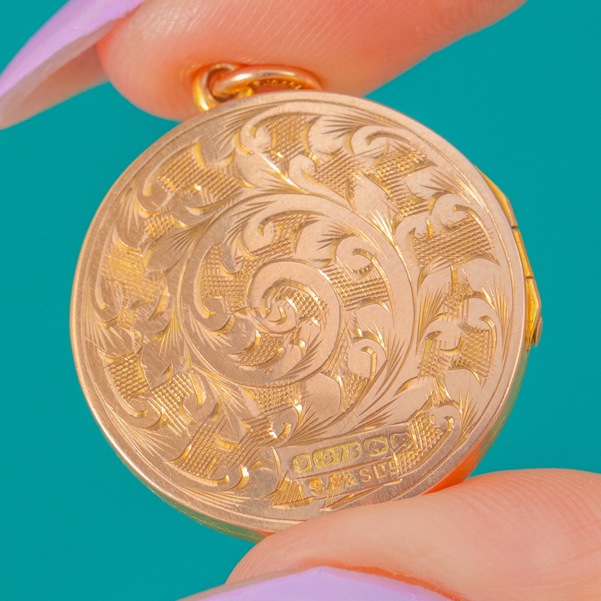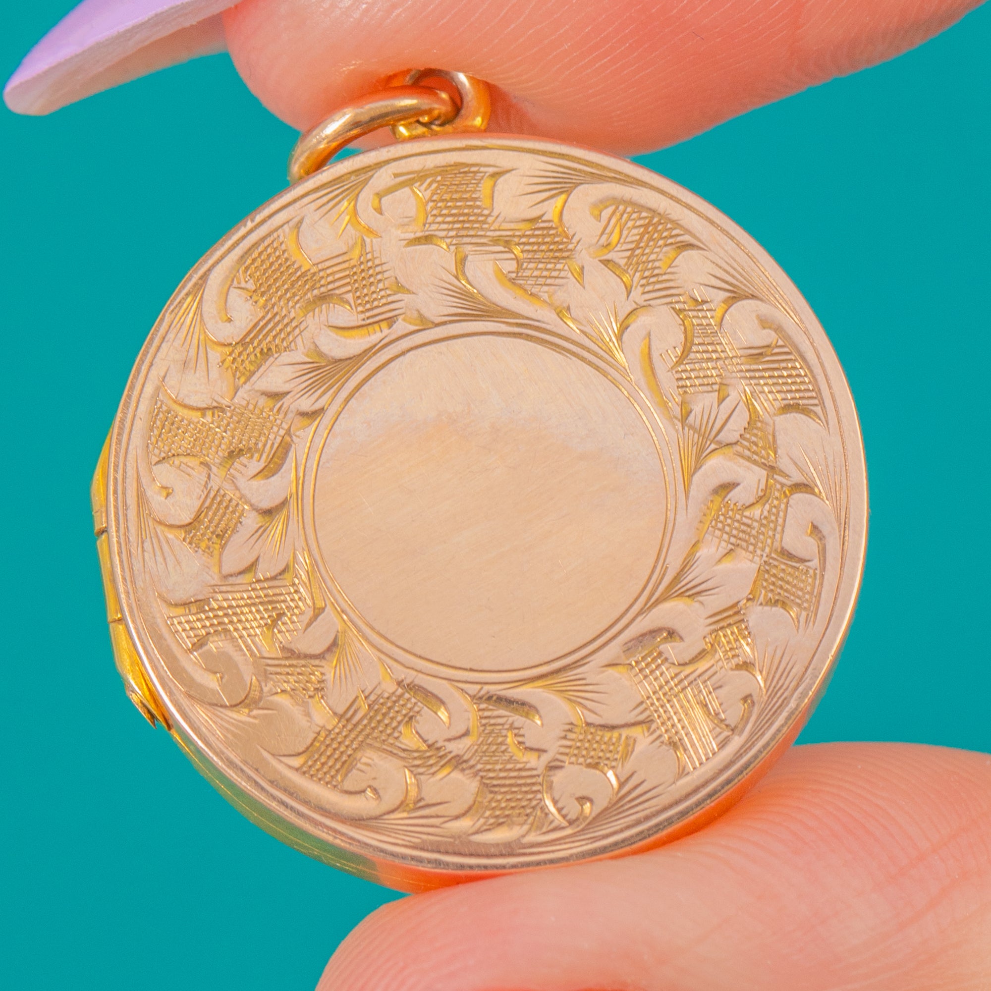 Antique SOLID 9ct Gold Round Engraved Locket, c.1914