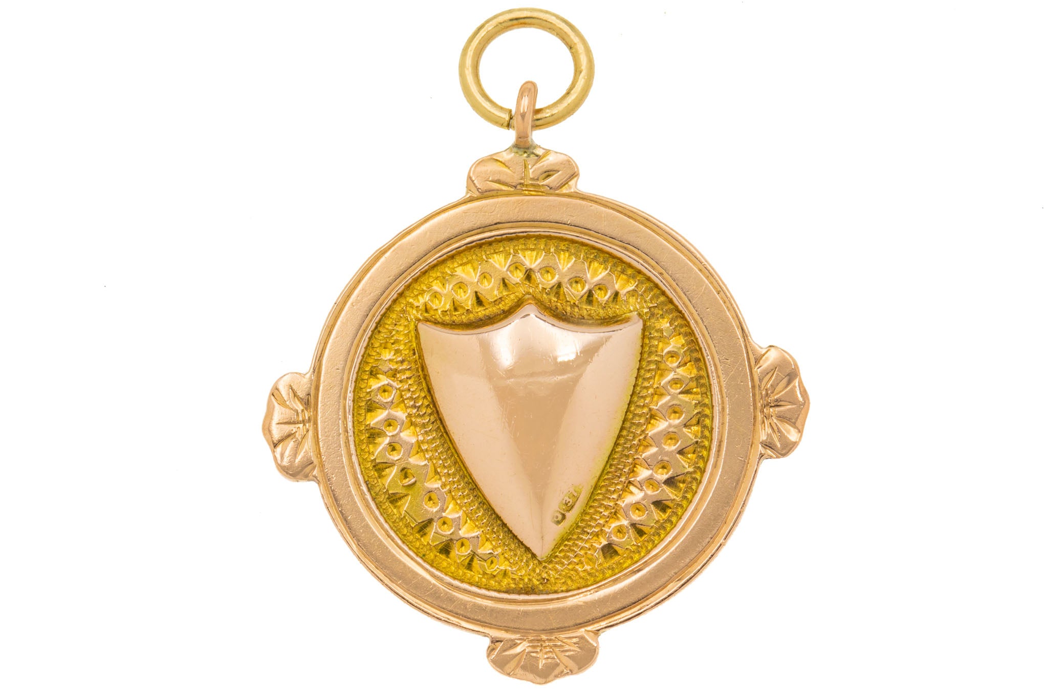 A splendid Art Deco 9ct Gold medal fob pendant for your collection! This piece has a blank shield on its front, which could be personalised with an engraving of an initial as a birthday gift to someone special.