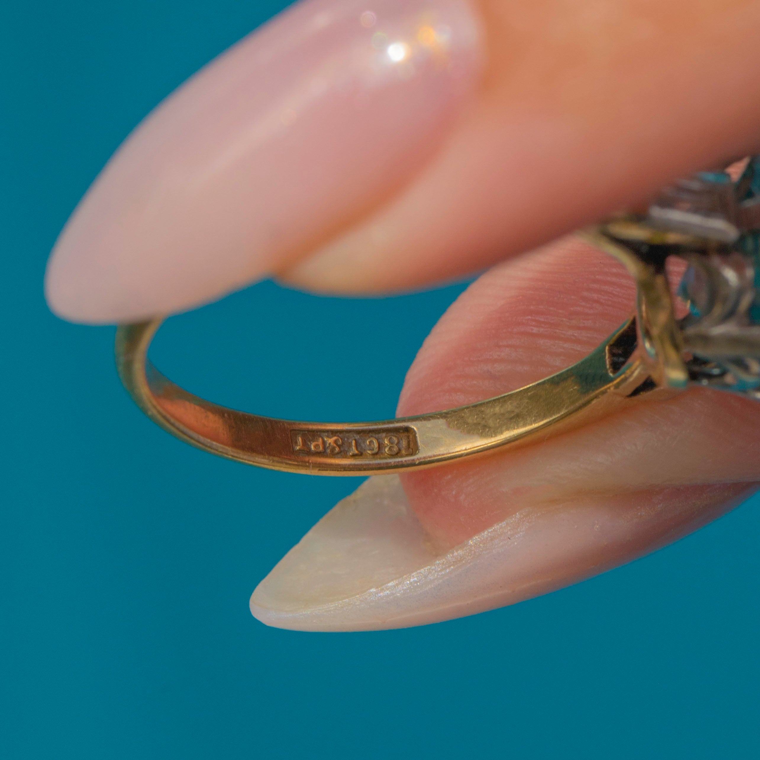 Stamped “18CT & PT”, this ring is a wonderful example of period craftsmanship, both wearable and highly collectible.