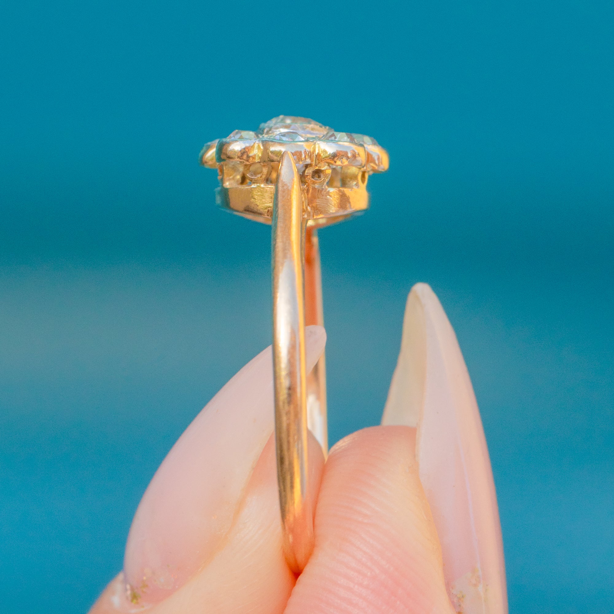 Beautifully proportioned with a 9mm cluster face, this ring offers incredible sparkle and charm. Perfect as an antique engagement ring or as a timeless everyday jewel, it showcases the enduring brilliance of early 20th-century Diamonds.