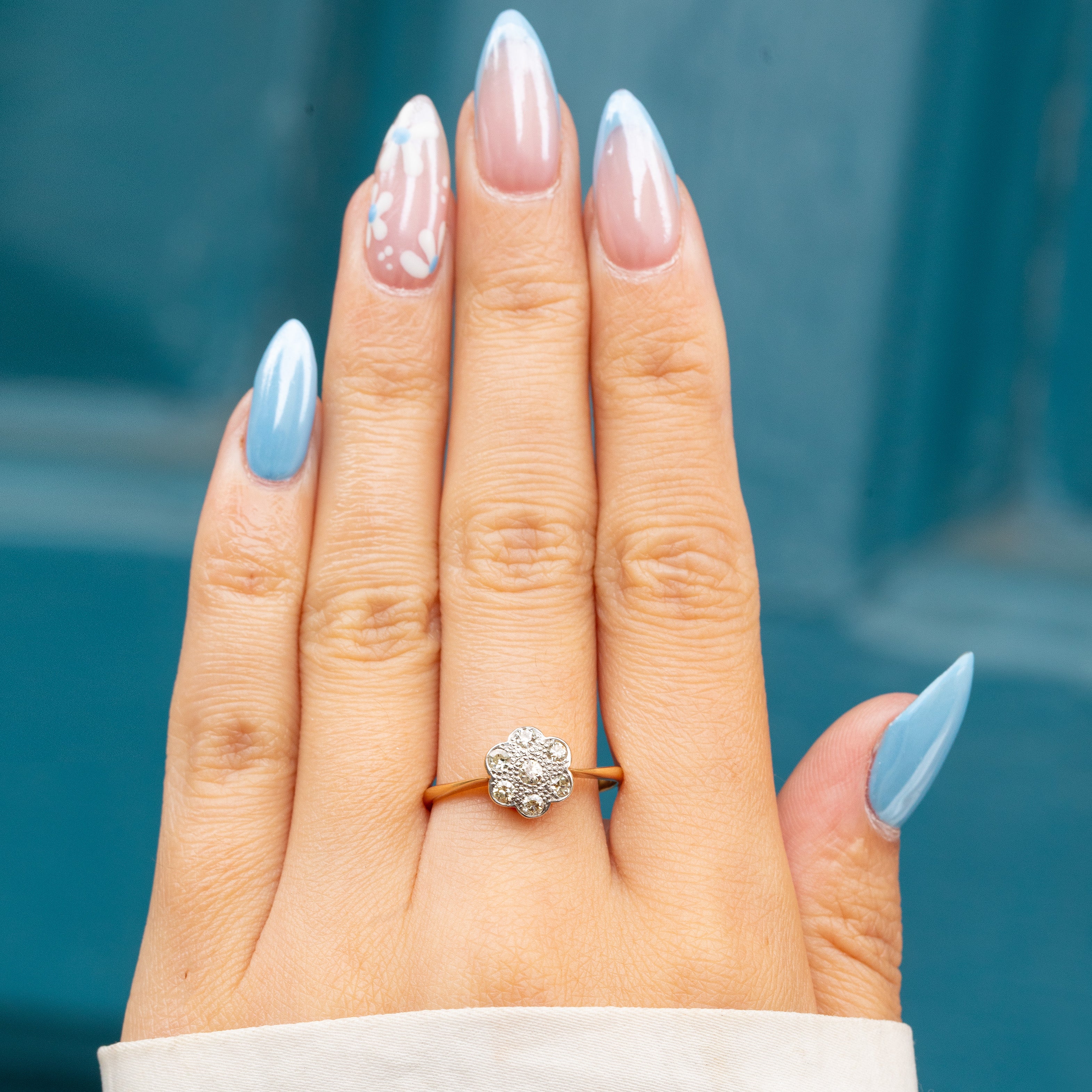 Art Deco 18ct Gold Diamond Daisy Cluster Ring, 0.20ct