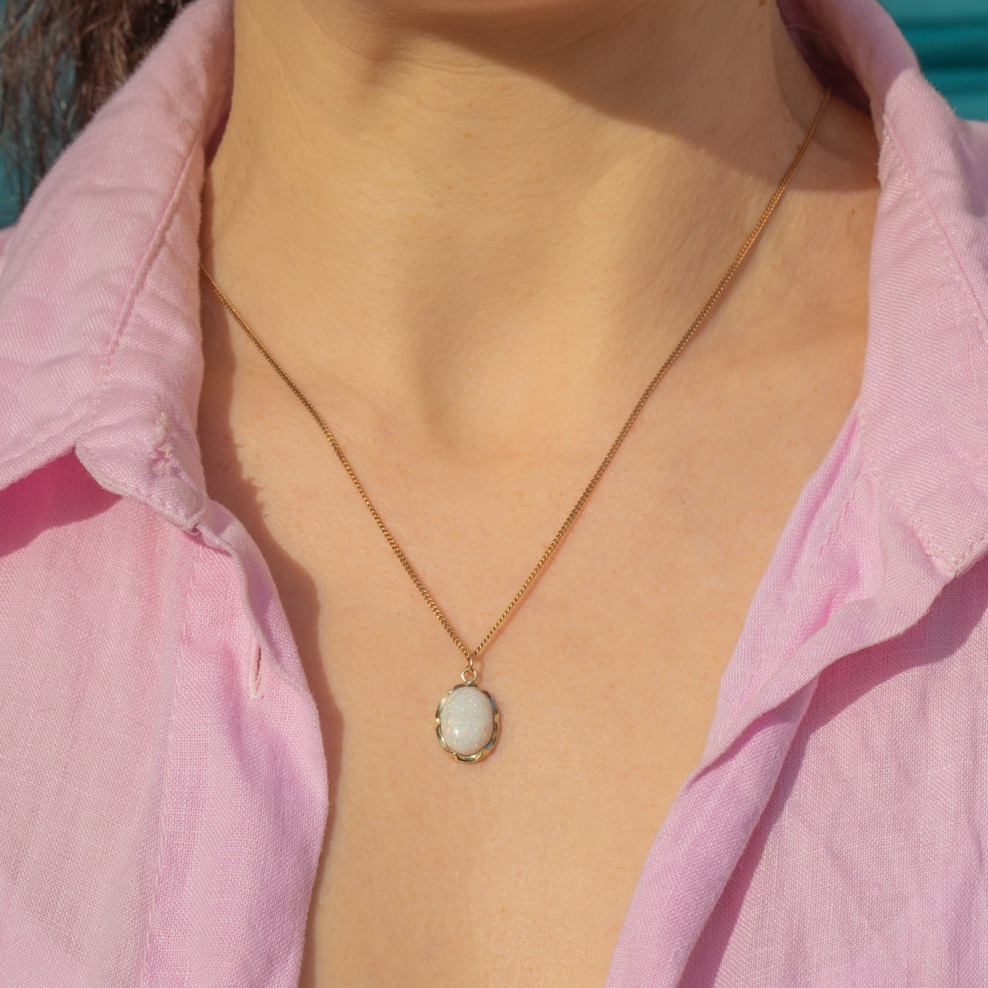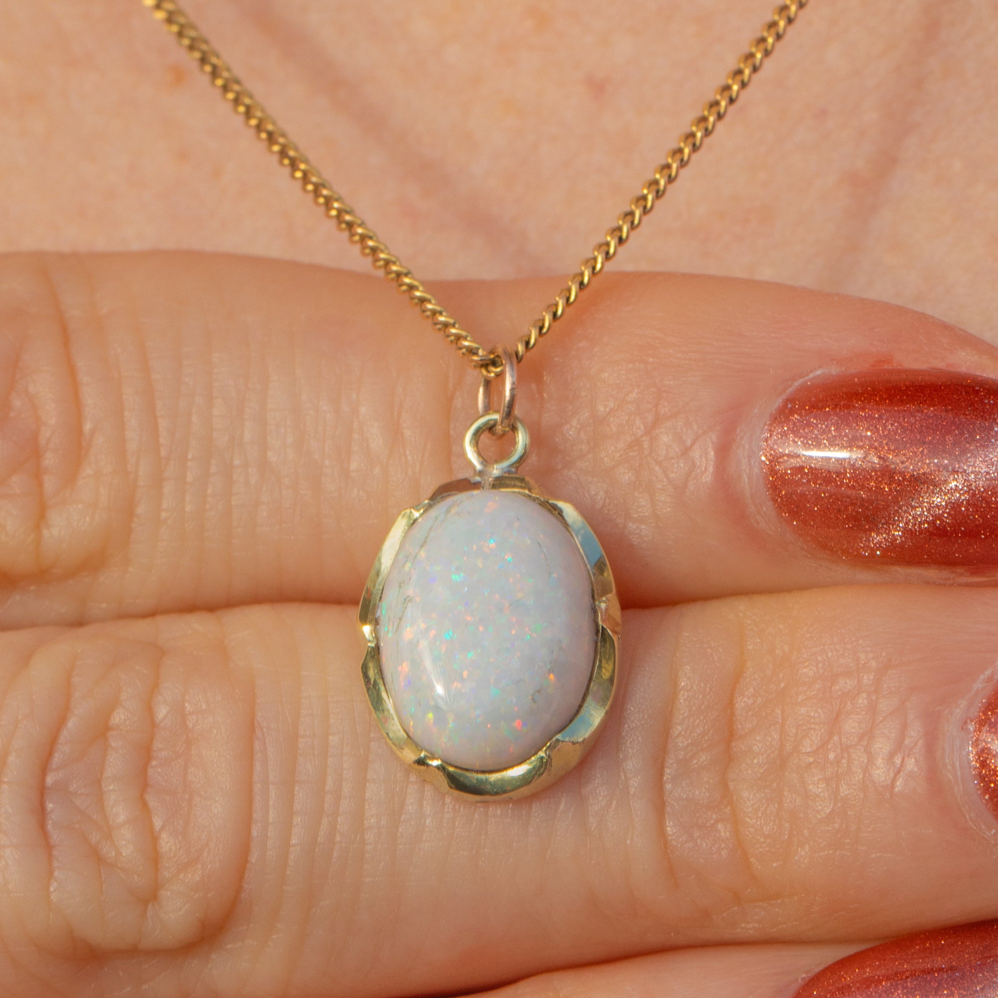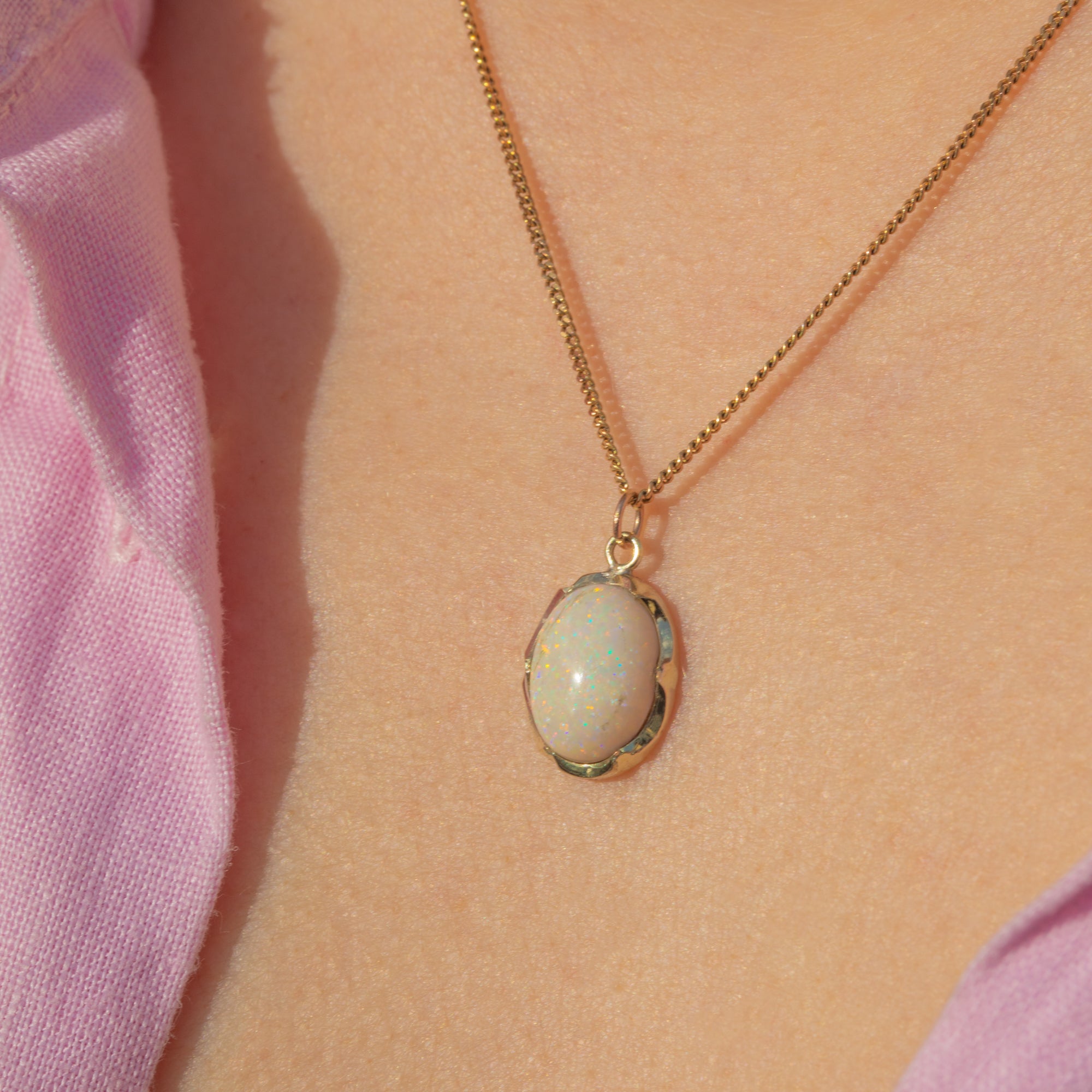 The petite size of this antique Opal pendant makes it a versatile piece that can be enjoyed every day suspended from a fine Gold chain!