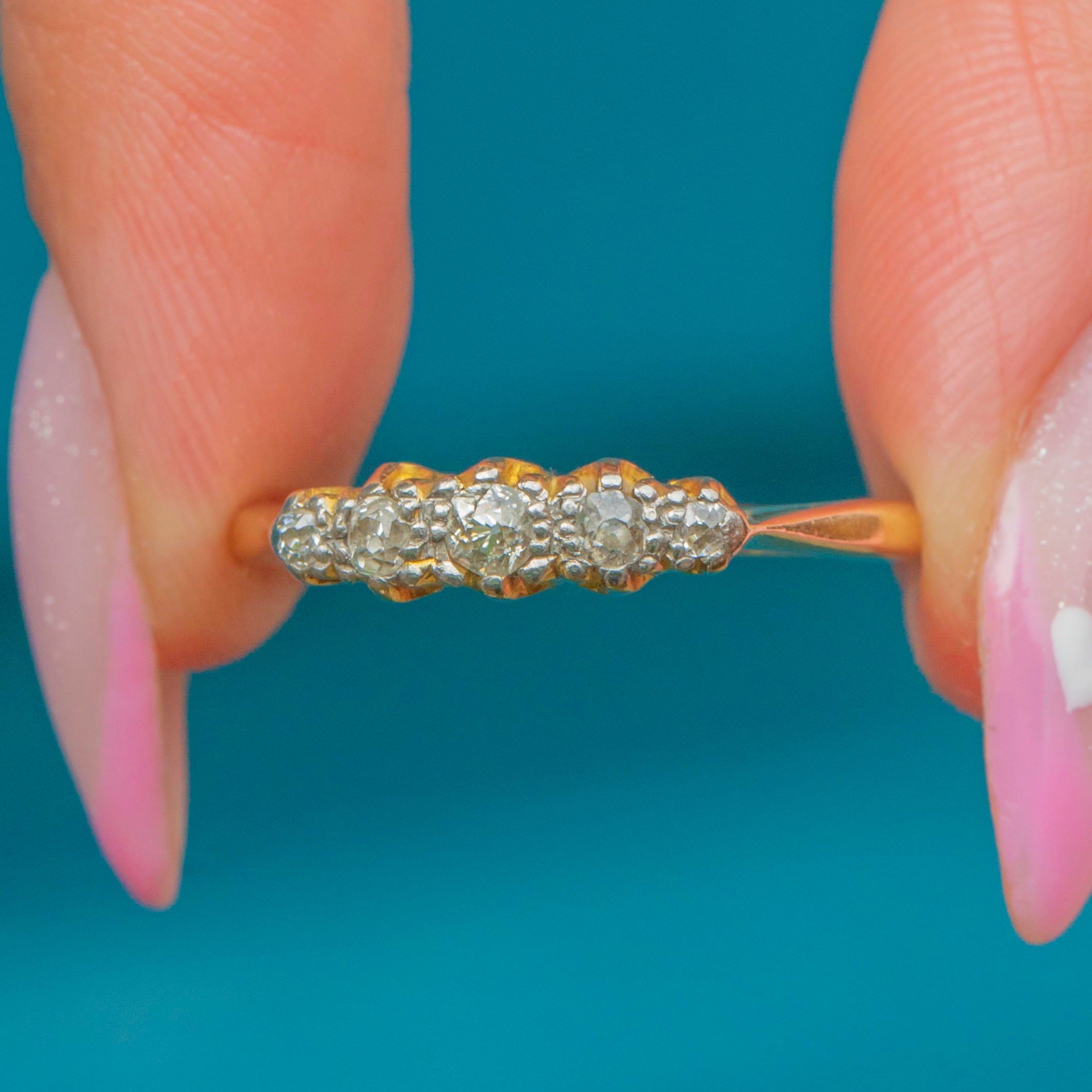 Art Deco 18ct Gold & Platinum Diamond Five-Stone Ring