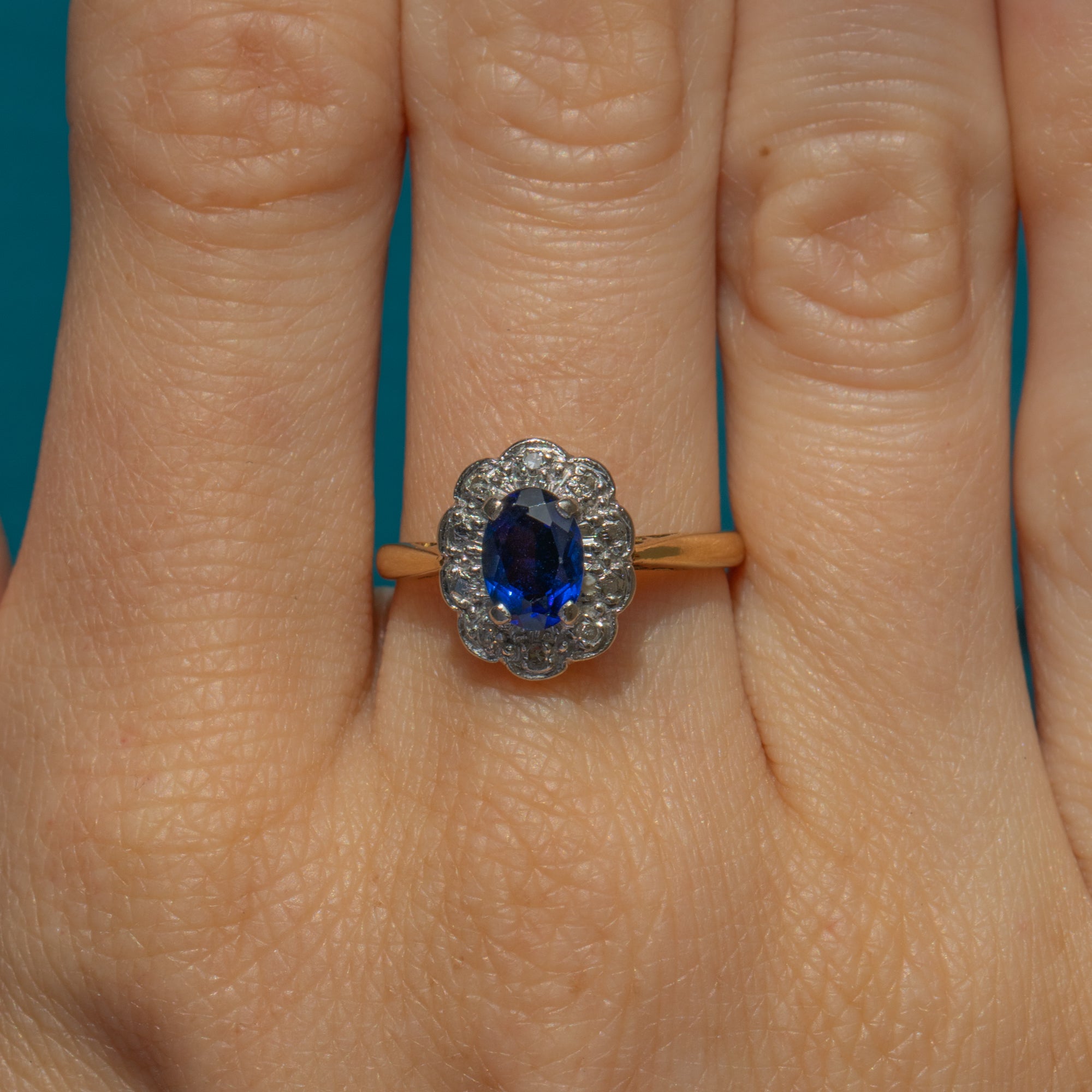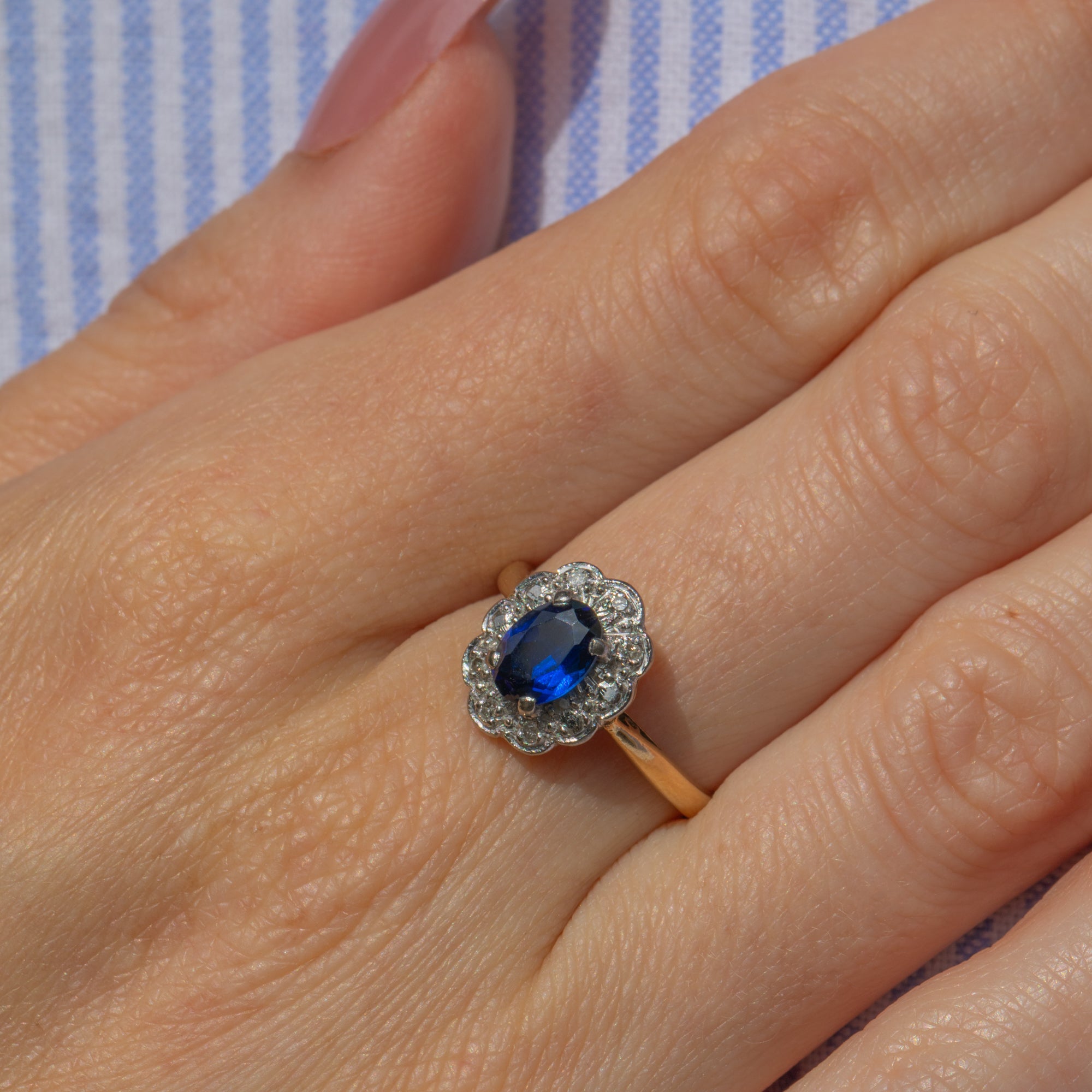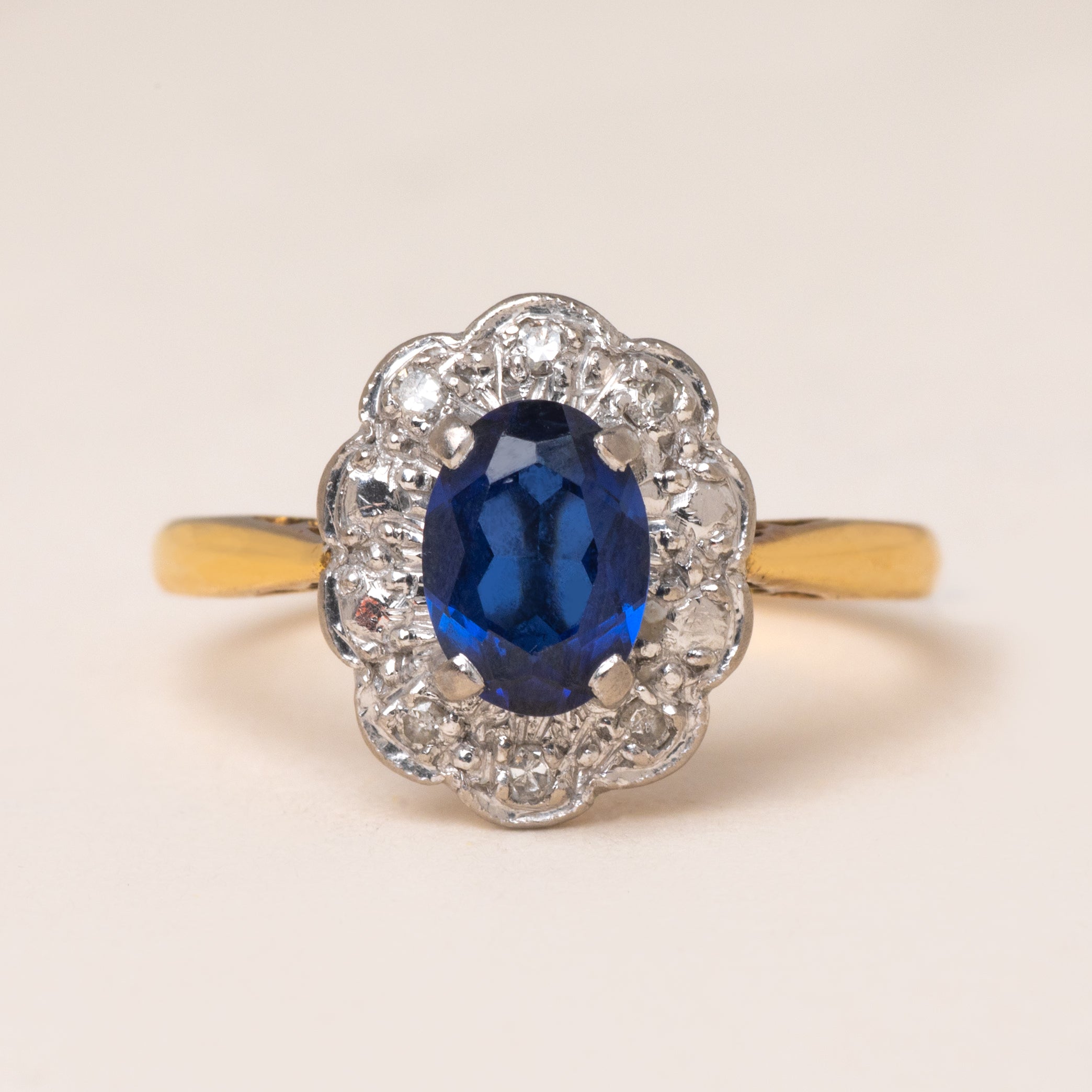 Art Deco 18ct Gold Sapphire Diamond Cluster Ring, 0.65ct Sapphire