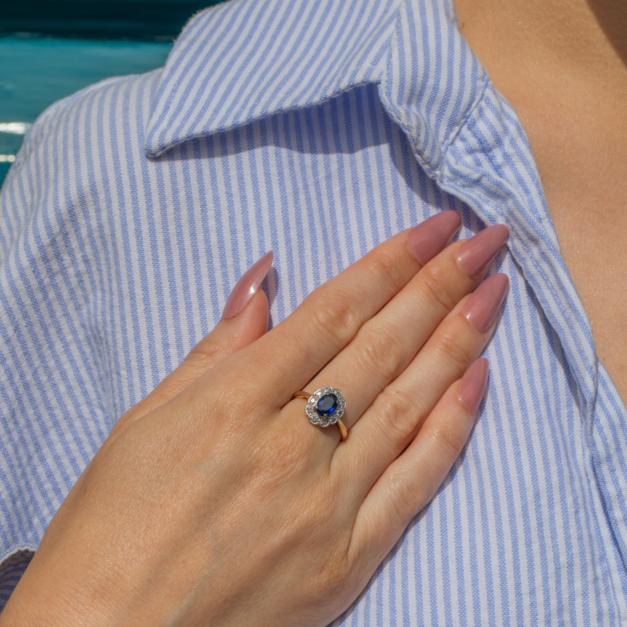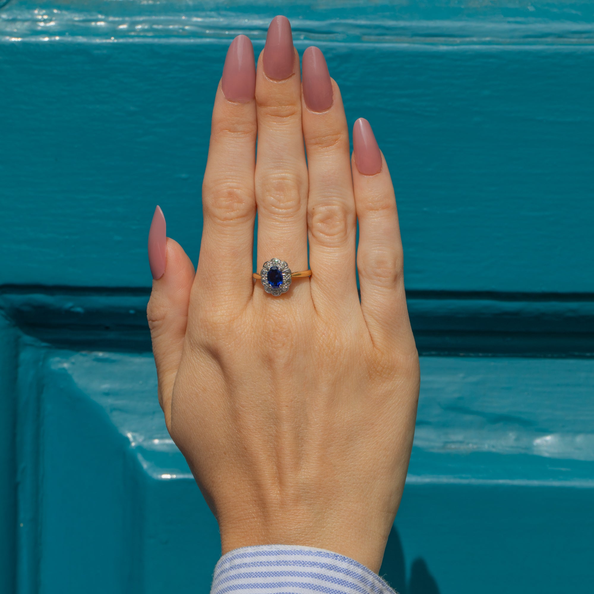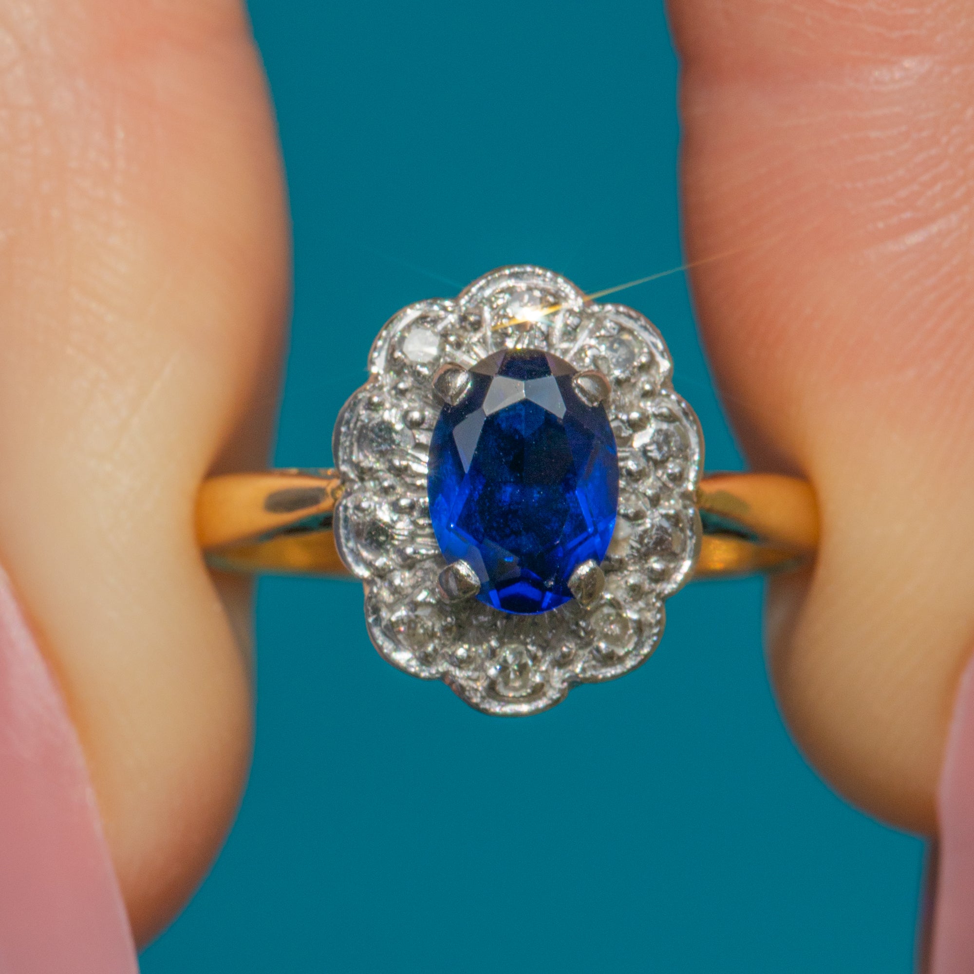 Art Deco 18ct Gold Sapphire Diamond Cluster Ring, 0.65ct Sapphire