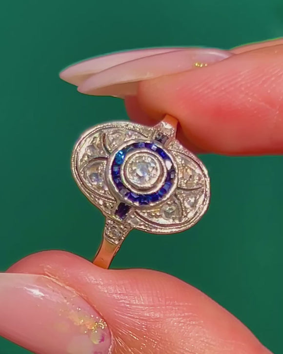Art Deco 18ct Gold Sapphire Diamond Target Ring c.1930