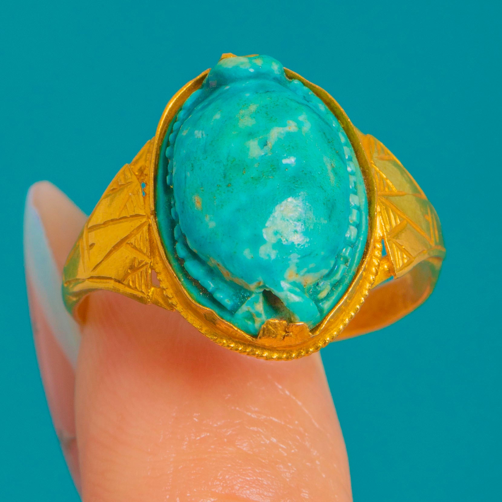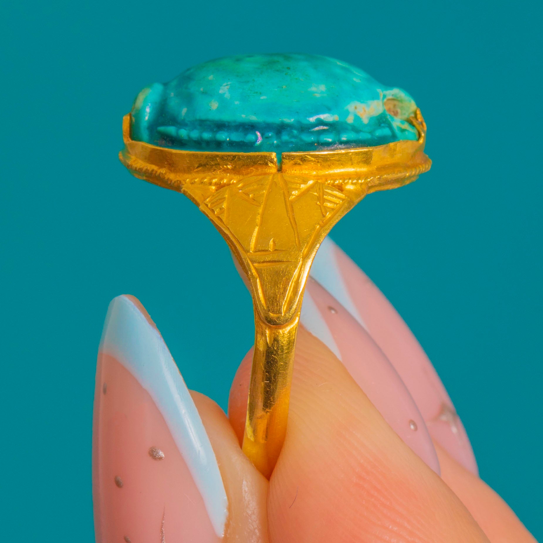 Art Deco 22ct Gold Archaeological Revival Faience Scarab Beetle Ring