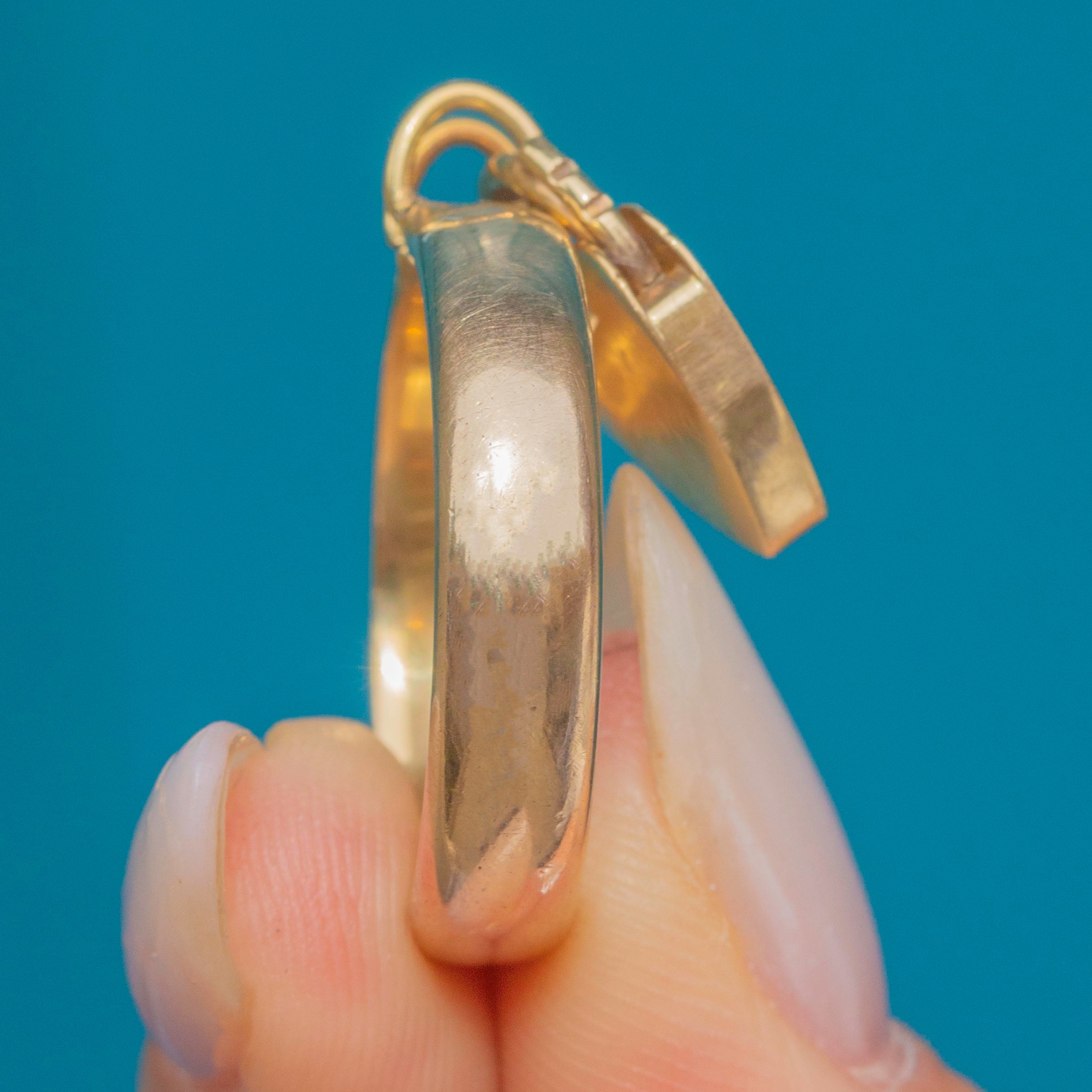 VERY GOOD: Gleaming a honey-hued 9ct Gold, she has aged well, with a smooth band and a full set of hallmarks still legible. There are a few faint scratches on the padlock, which are only visible under close inspection. She is a fantastic and coveted find and will quickly become your most treasured possession!