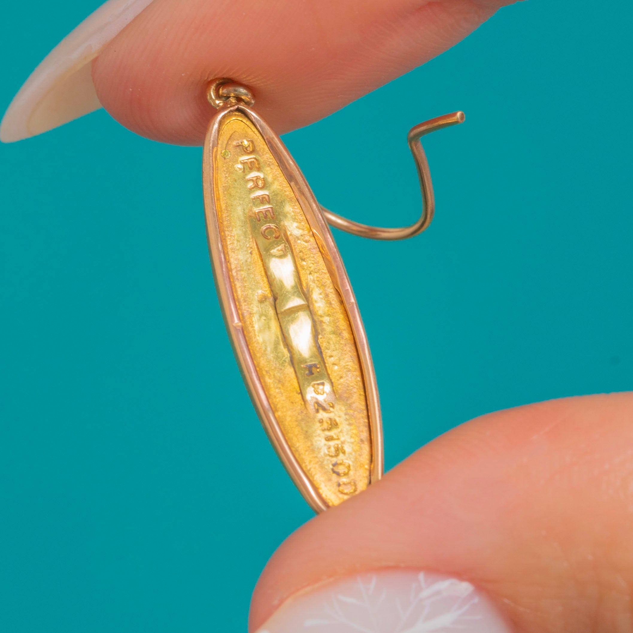MATERIALS: Tests as Gold cased metal, 9ct Gold hooks.