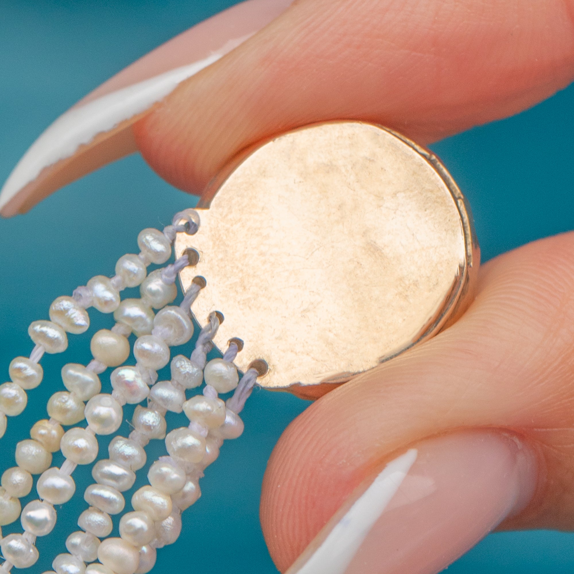 MATERIALS: Tests as Gold-toned metal, Pearl, Paste.