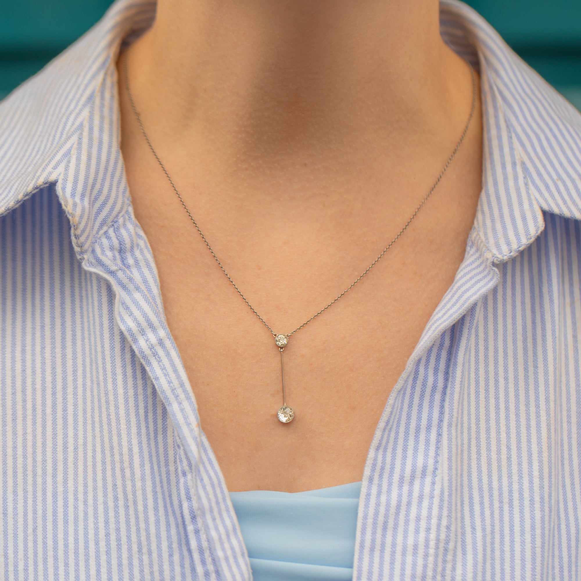Art Deco Platinum Old European-Cut Diamond Drop Necklace, 0.80ct
