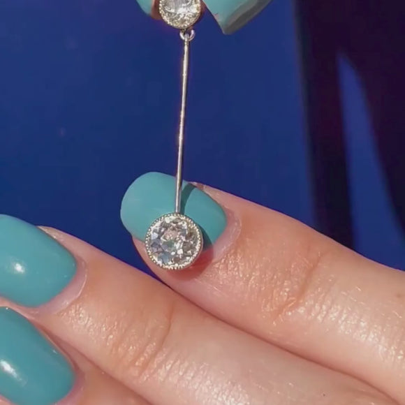 VERY GOOD-EXCELLENT. This Art Deco Platinum Old European-cut Diamond drop necklace is in fabulous condition with sparkling rare old European-cut Diamonds and tons of fire! The Diamonds are secure in their bezel settings and free from any chips or abrasions. The chain has secure links and is finished with a bolt ring, allowing you to wear it with confidence. The extension bolt-ring is a little stiff but rest assured that once shut, the necklace is secure around your neck.  This gorgeous antique necklace is ready to be worn with pride for years to come!