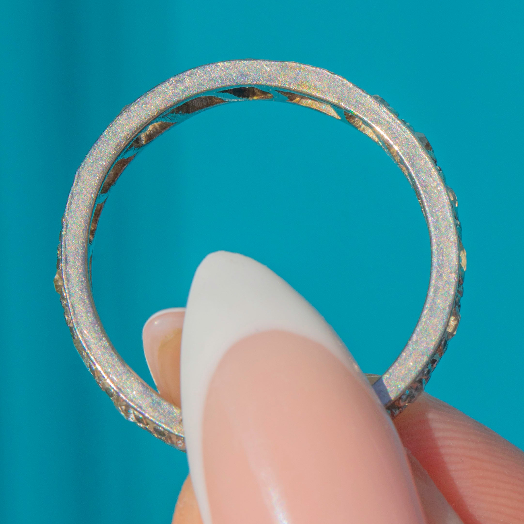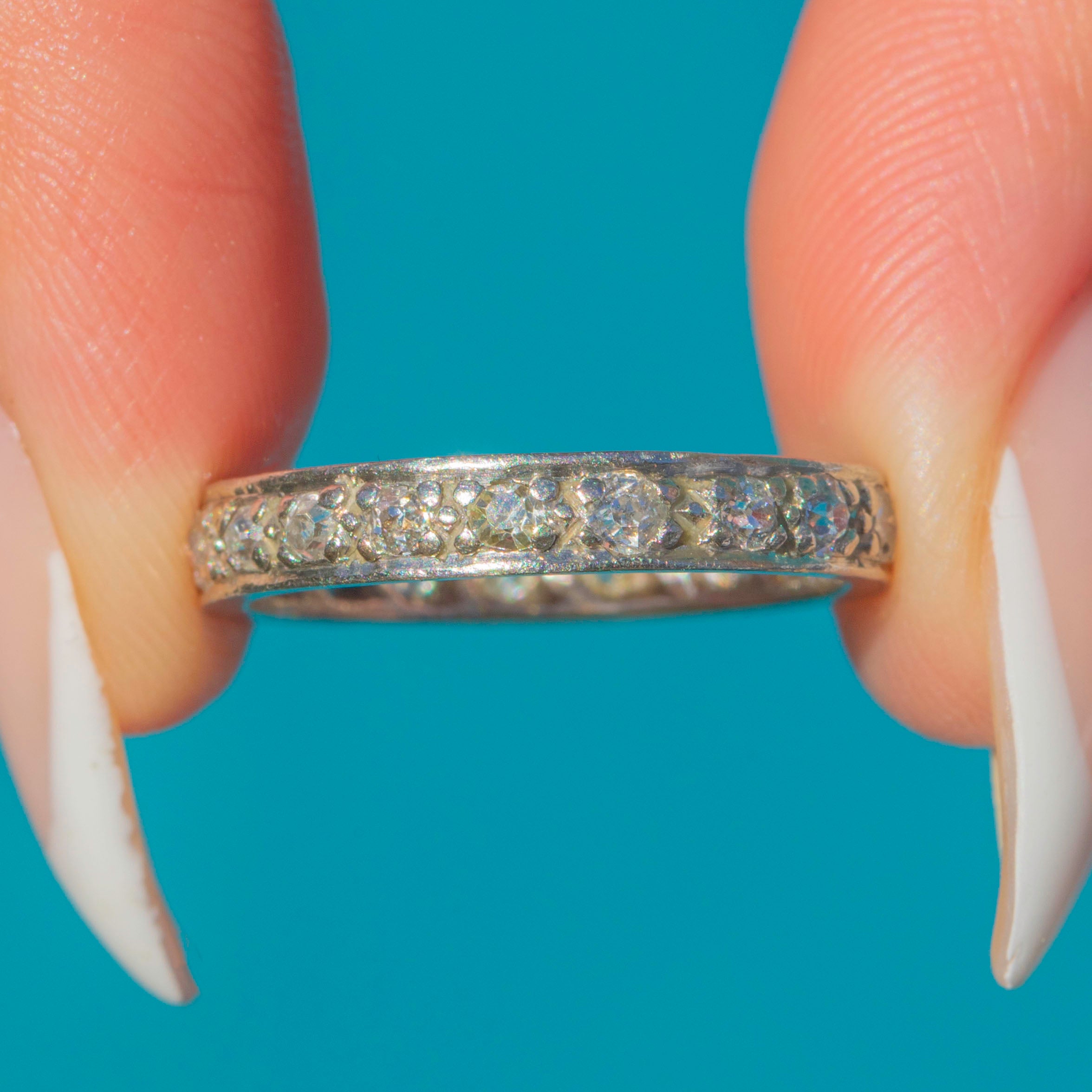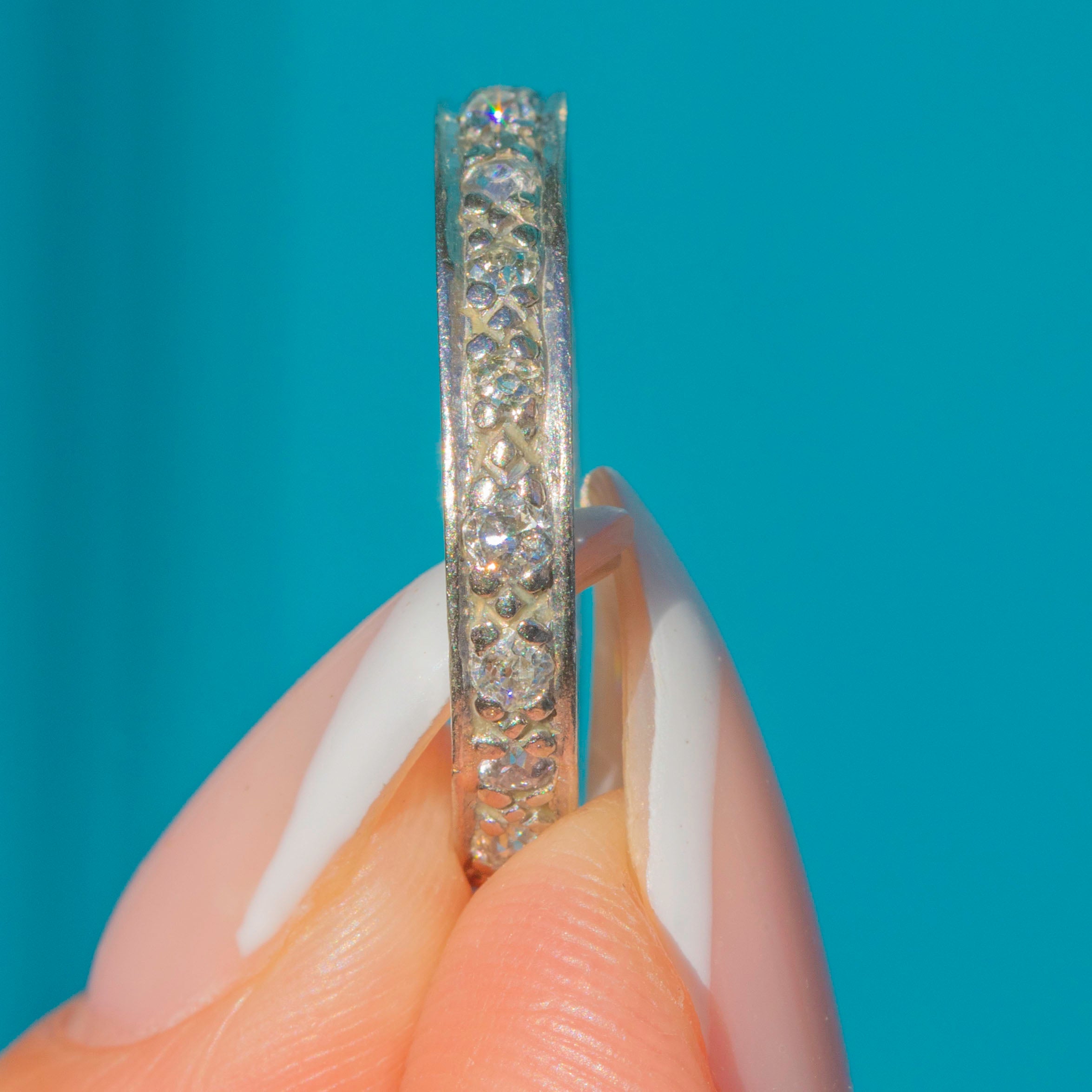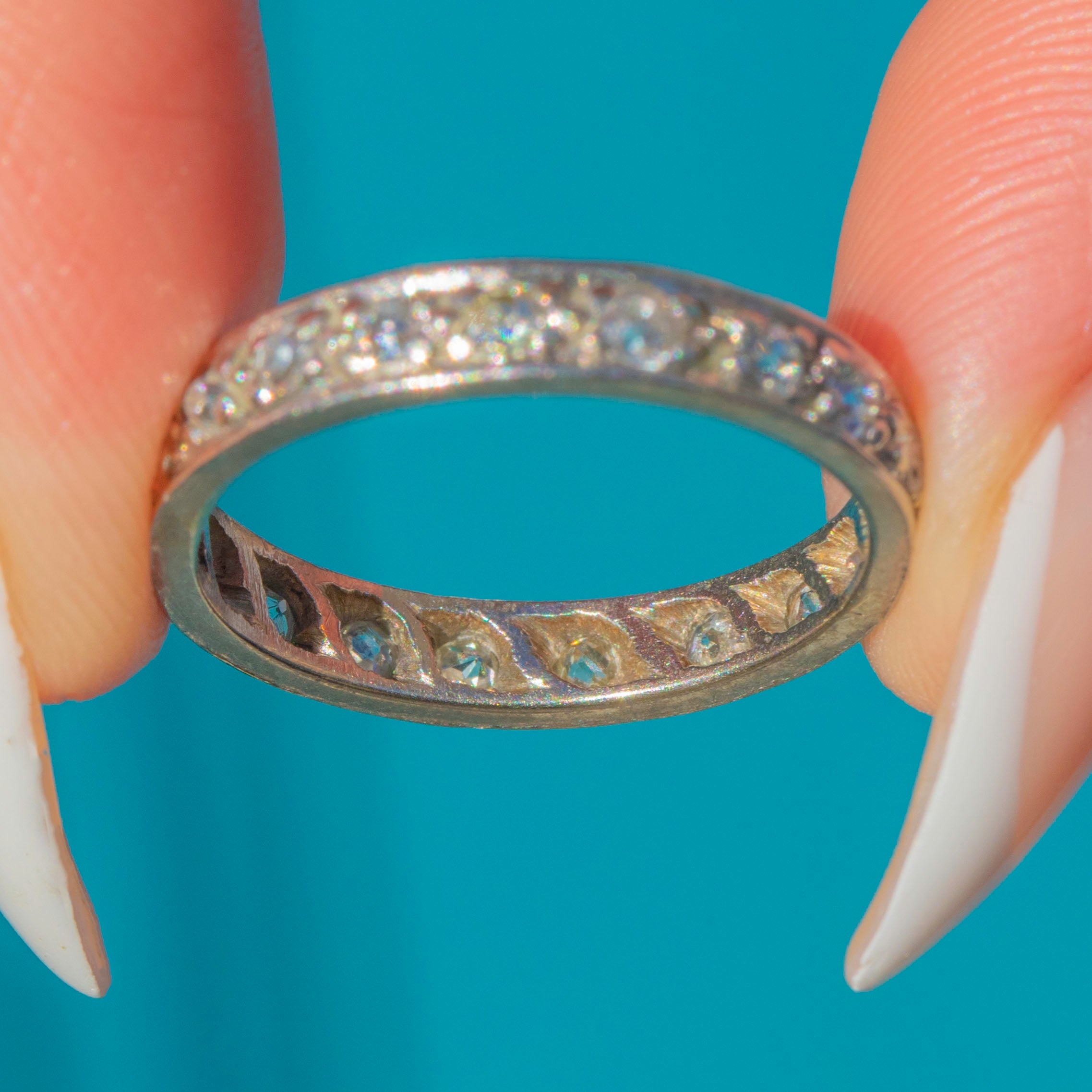 Eternity rings symbolise everlasting love, and this 1920s example carries all the timeless appeal of the Art Deco era. Whether worn alone or stacked with other rings, its clean lines and refined proportions make it a versatile and meaningful piece.