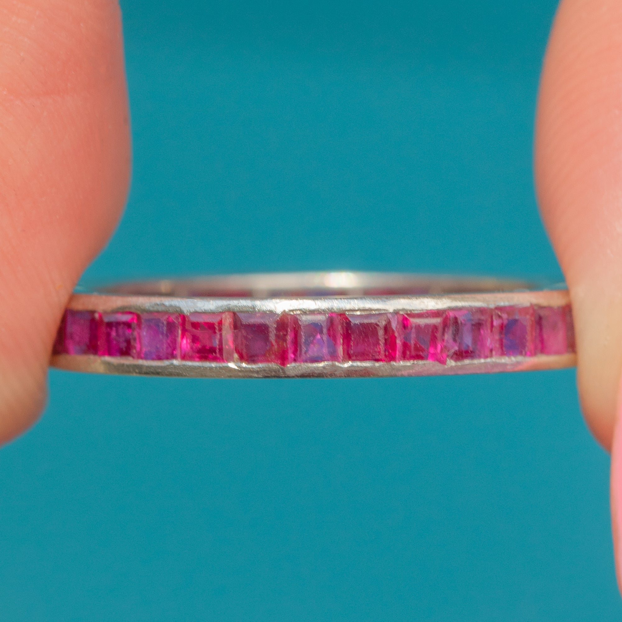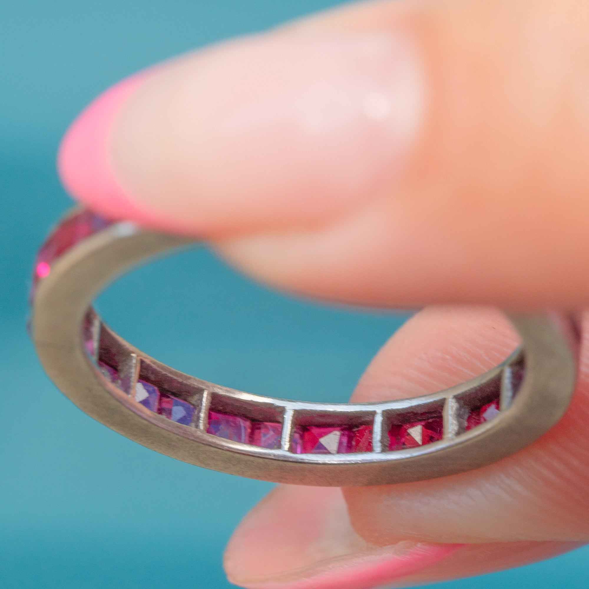 Art Deco Platinum Ruby Eternity Ring, UK P / US 7.5