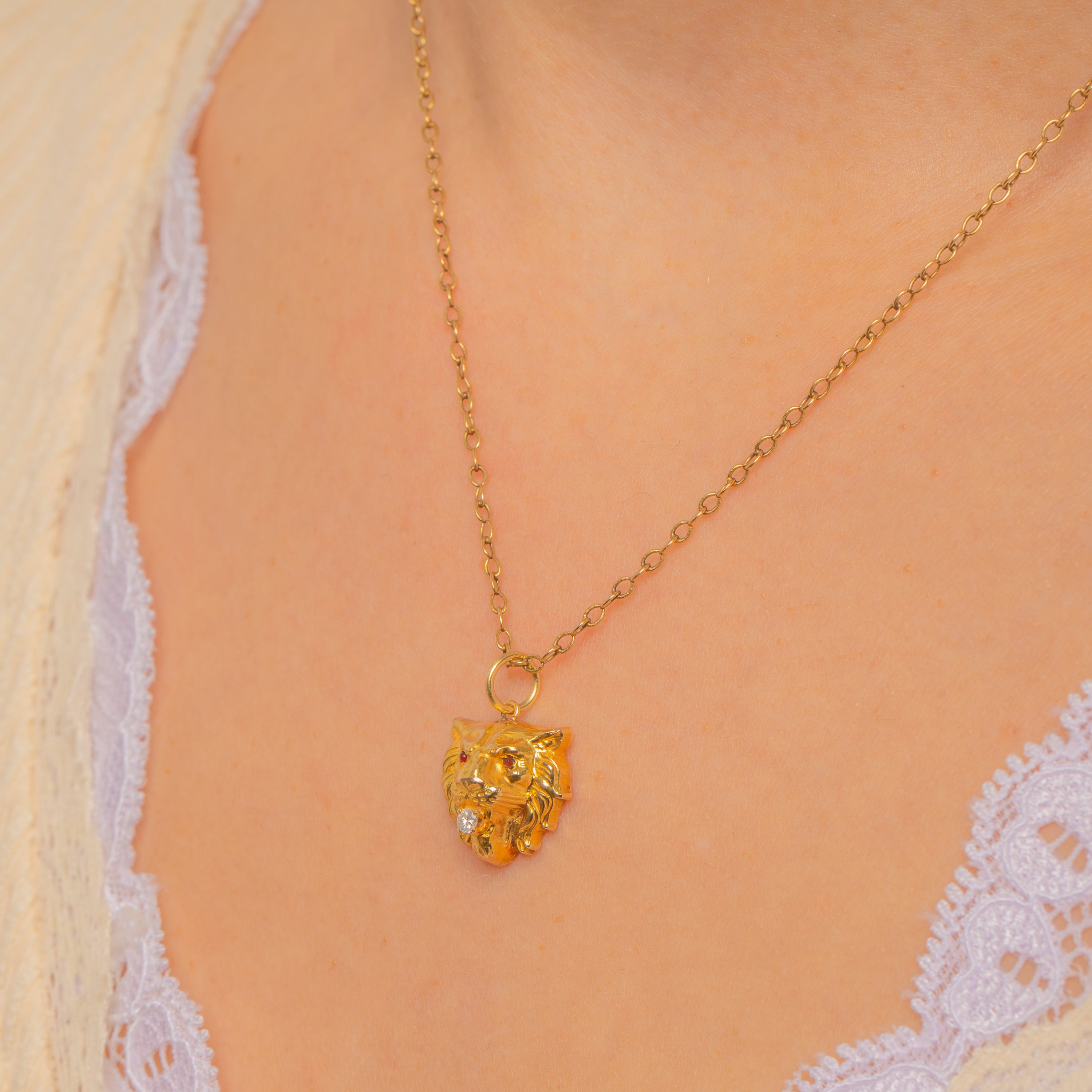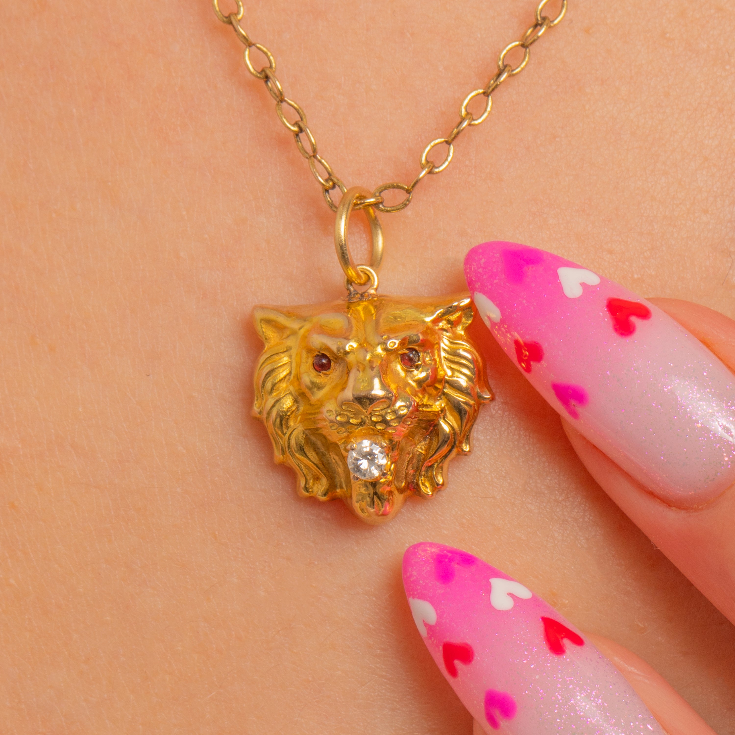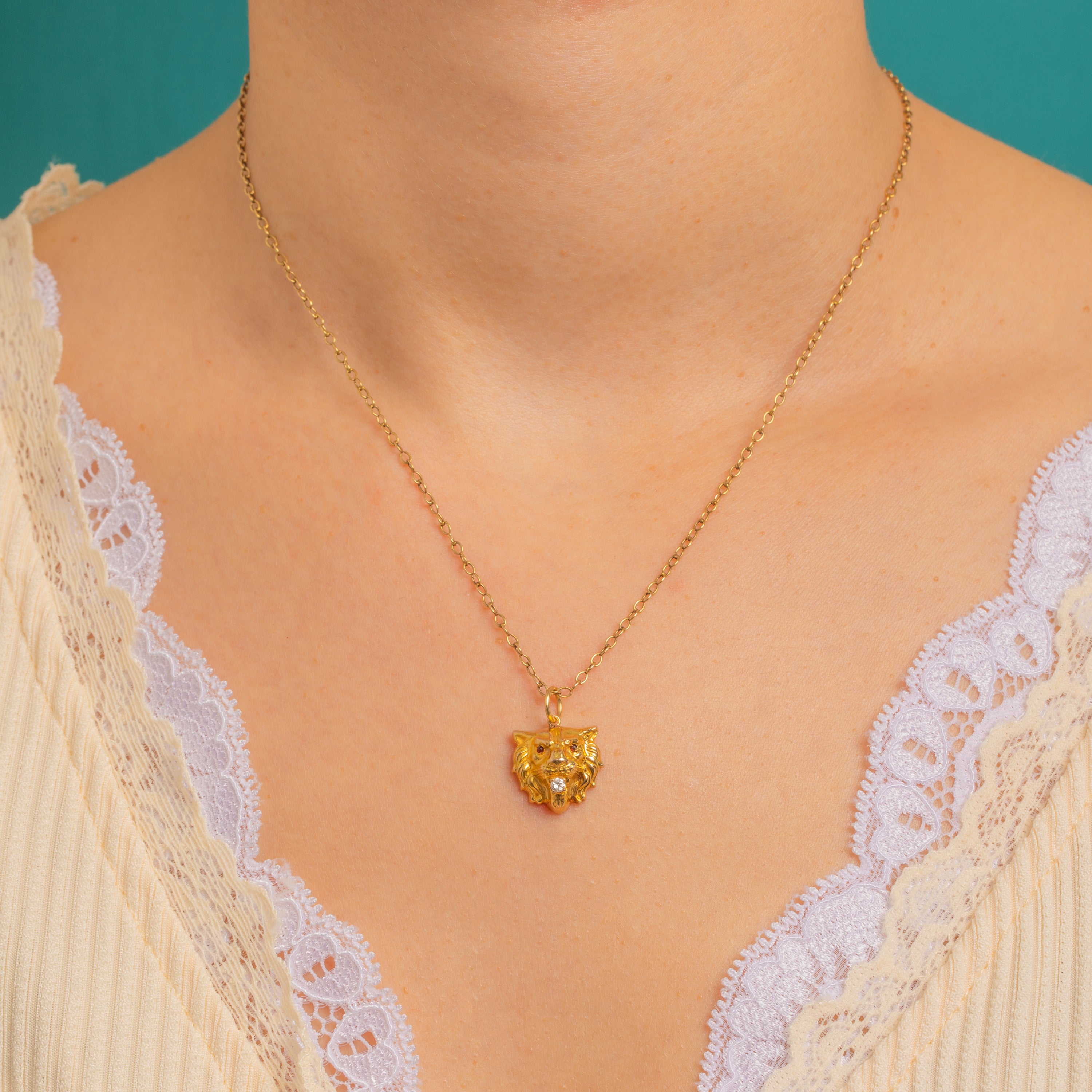 A spirited little guardian from the Art Nouveau era, this 15ct Gold lion head pendant is rich with sculptural detail. The high-relief modelling captures the mane’s texture and the feline’s confident profile, giving this compact charm a bold, talismanic presence.