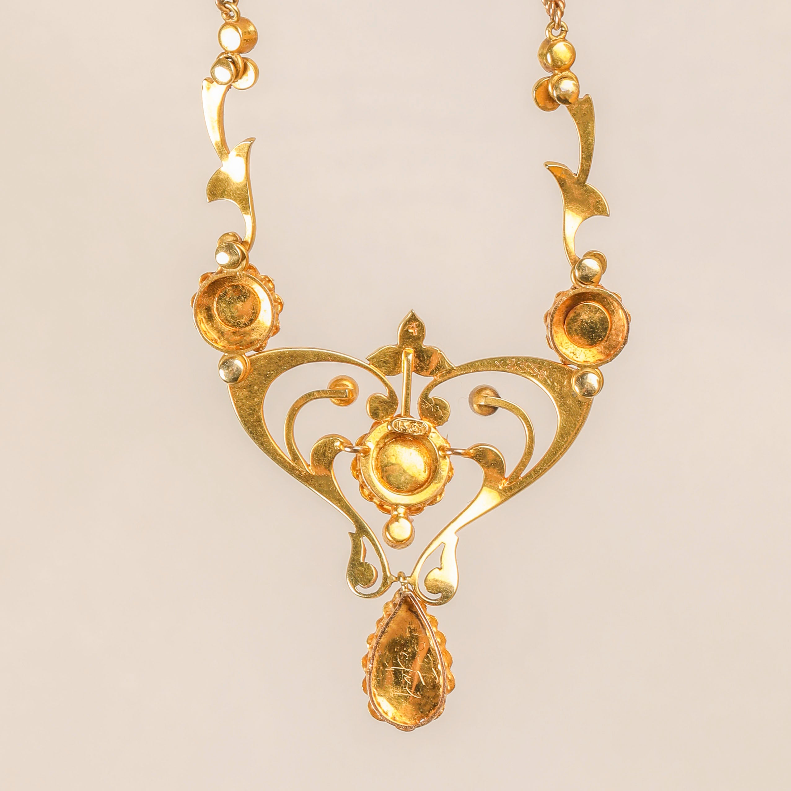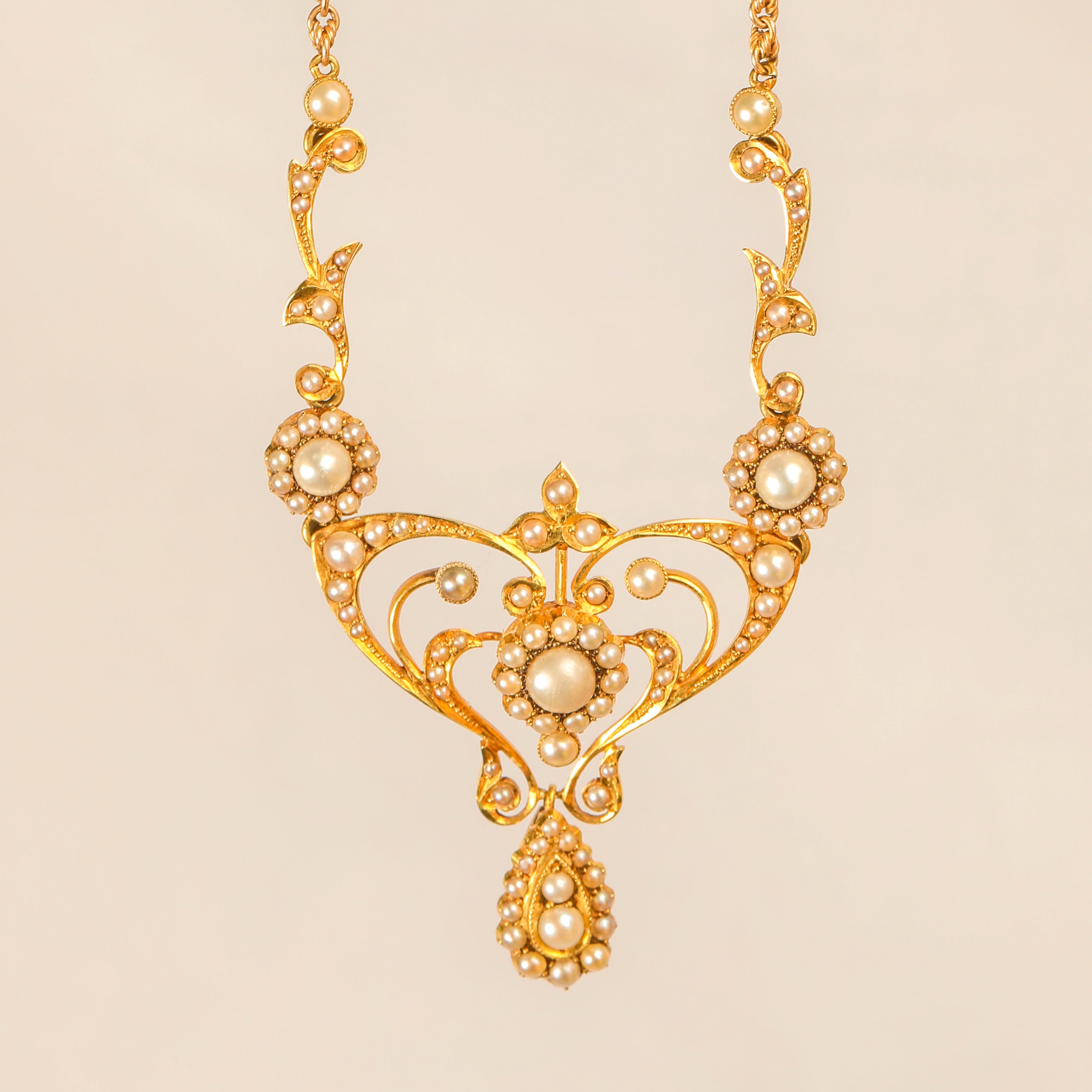 Art Nouveau 15ct Gold Pearl Lavalier Necklace