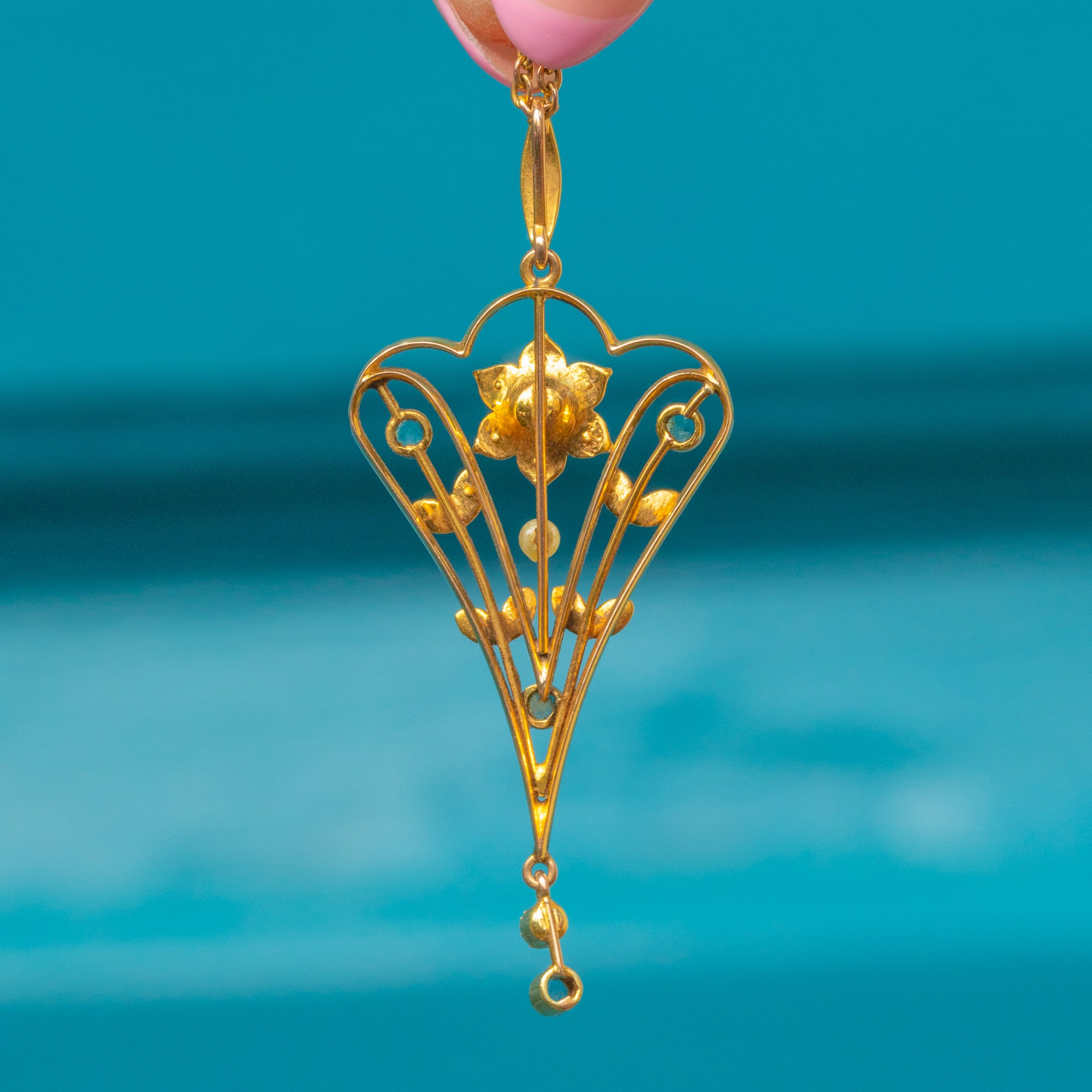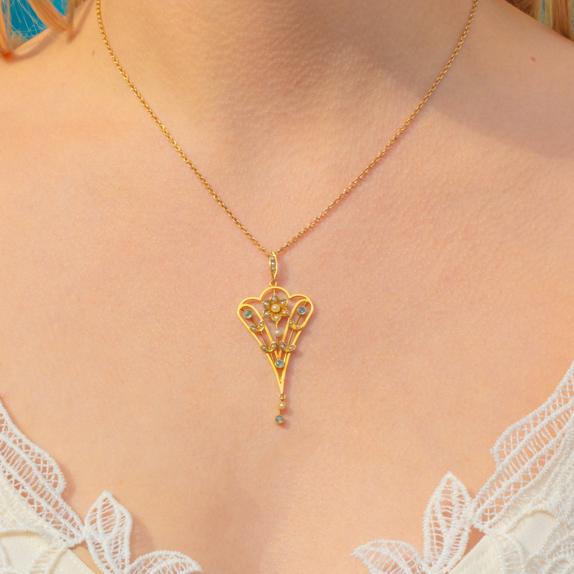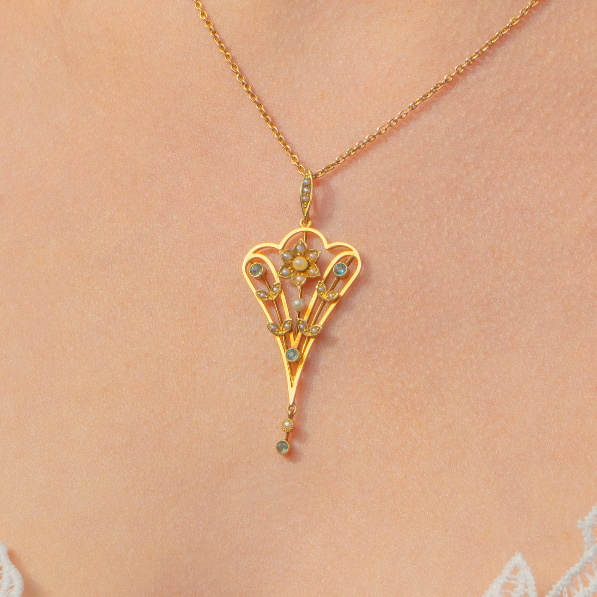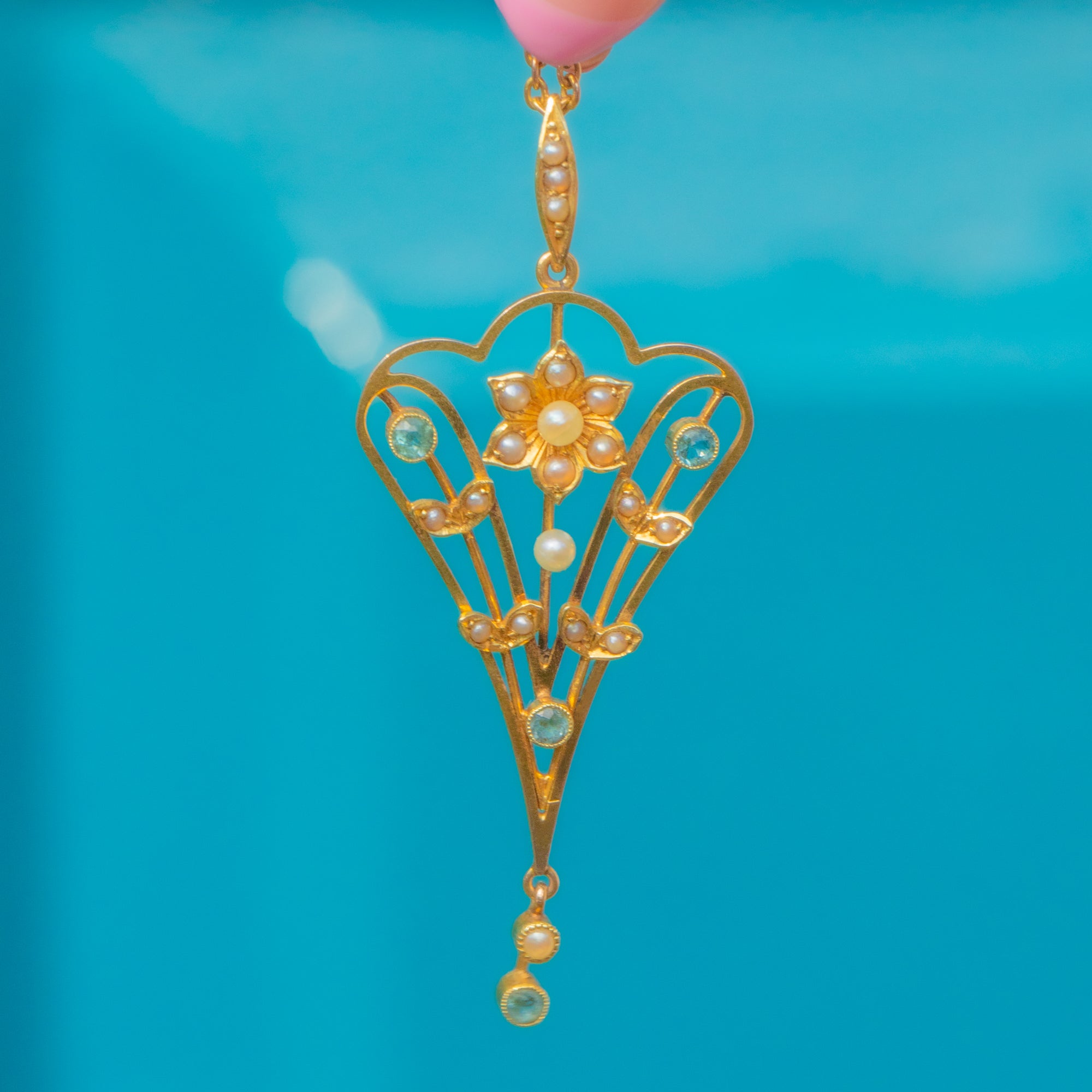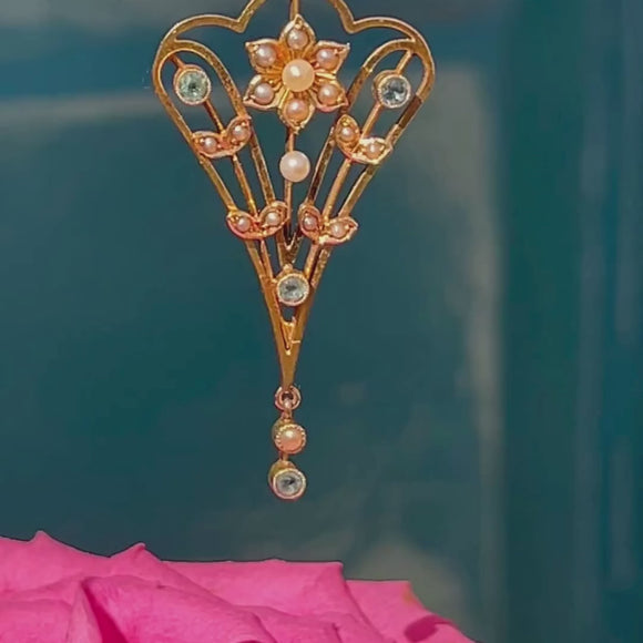 Art Nouveau 18ct Gold Aquamarine Pearl Drop Pendant Item added