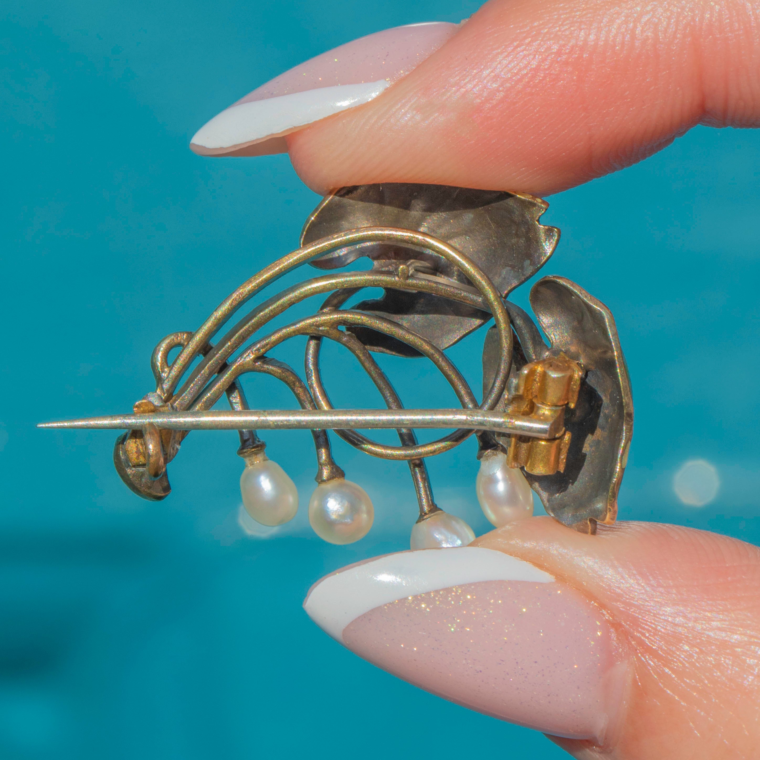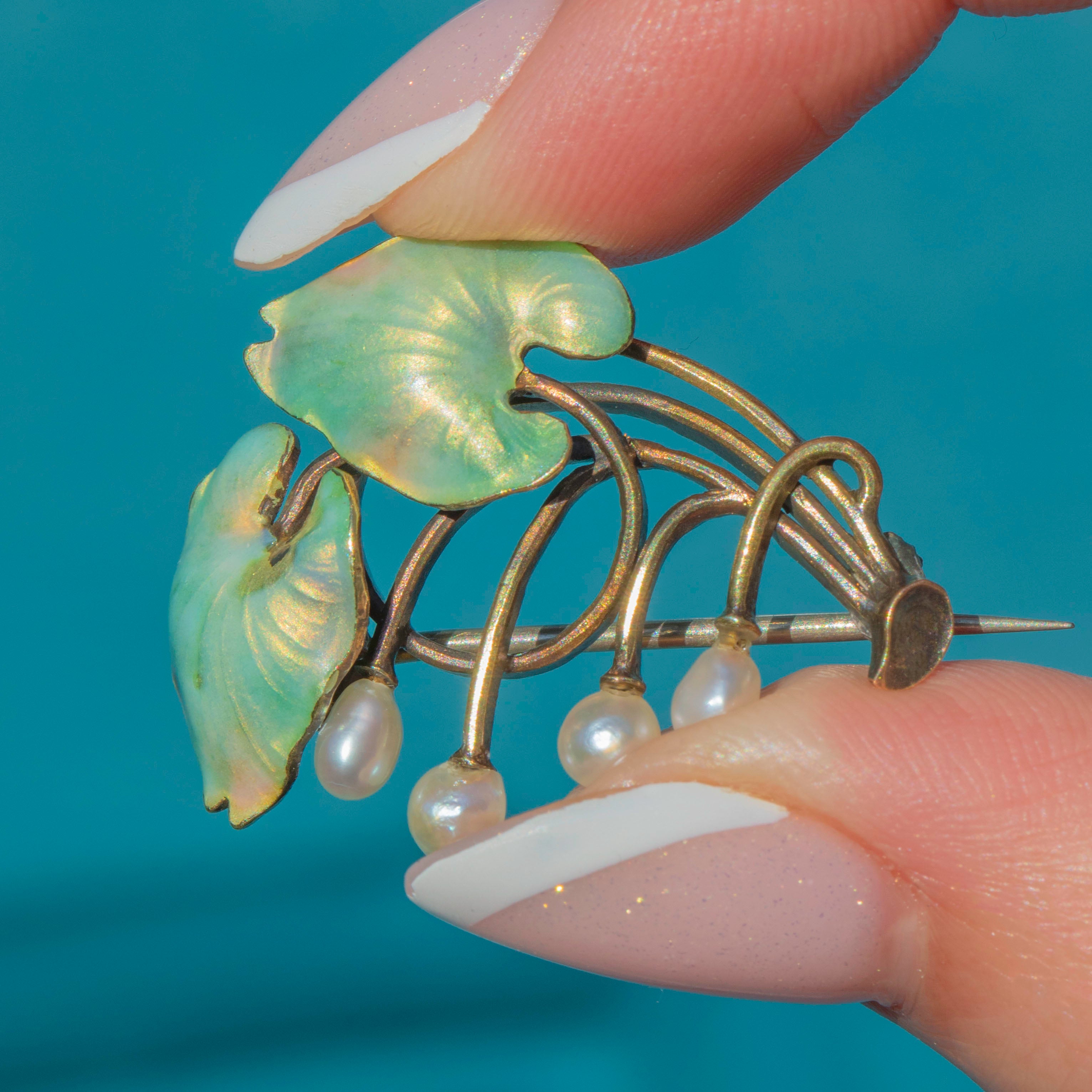 The naturalistic and fluid design of this brooch is distinctly Art Nouveau, with its flowing lines and meticulous Enamel work perfectly capturing the exquisite craftsmanship of the era.