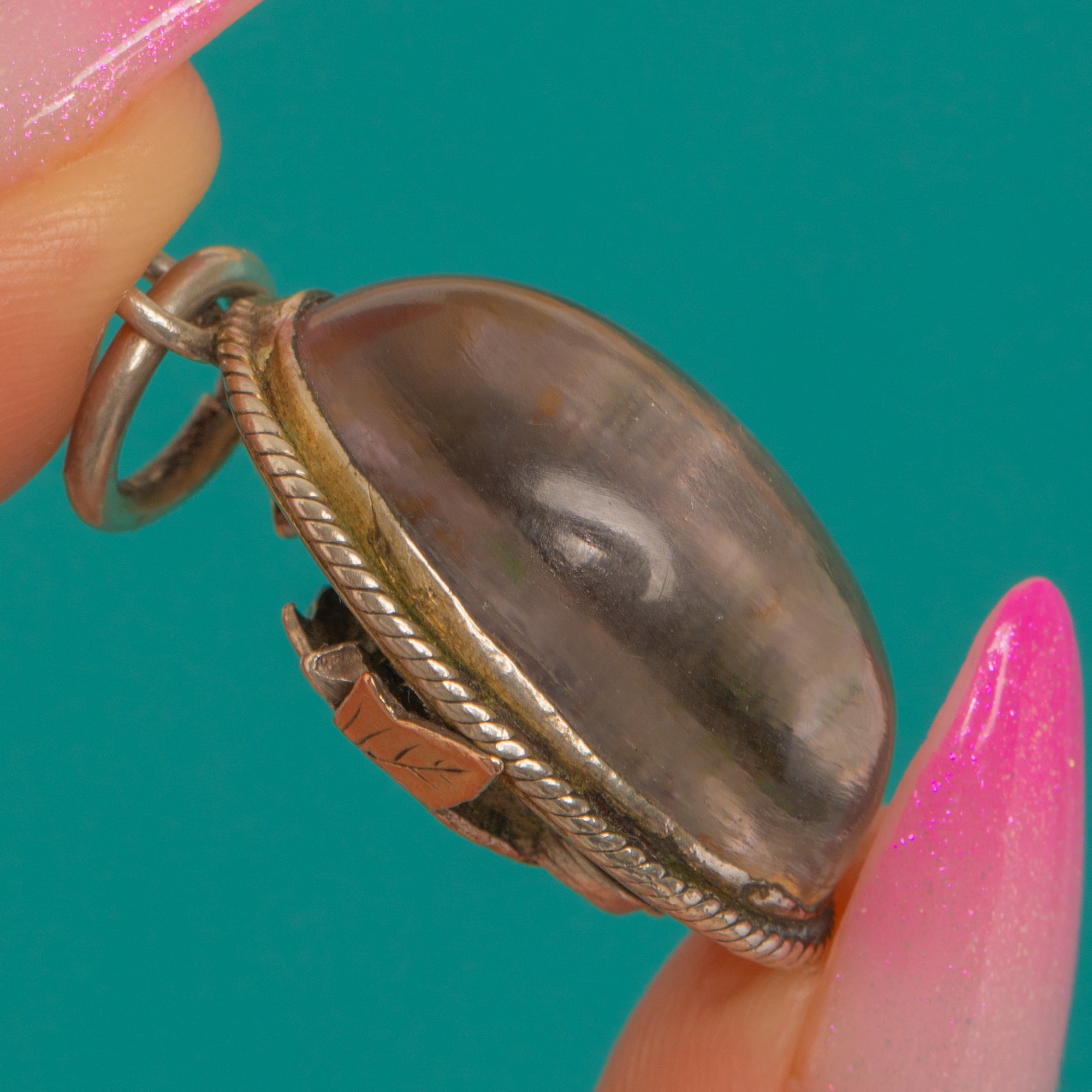 Art Nouveau Silver Rock Crystal Pendant with Gold Leaves