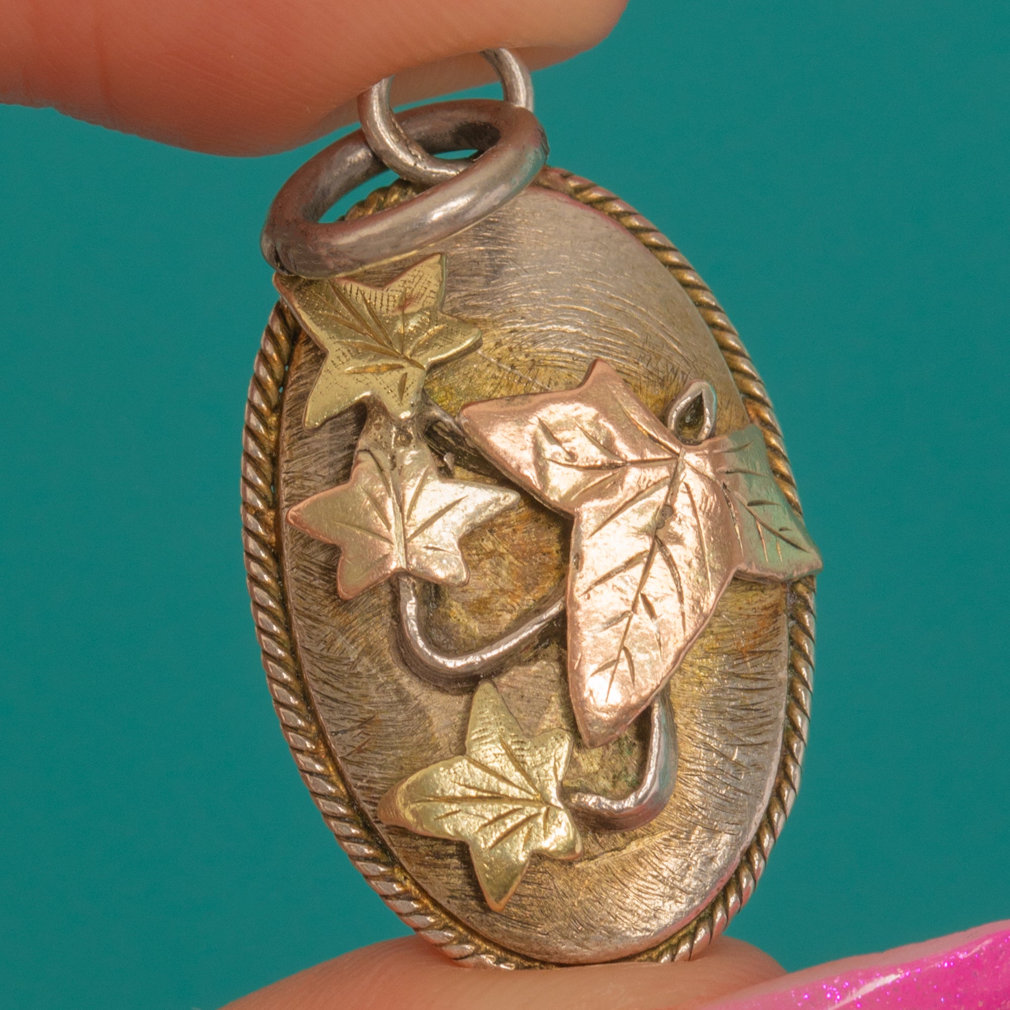 Art Nouveau Silver Rock Crystal Pendant with Gold Leaves Item added