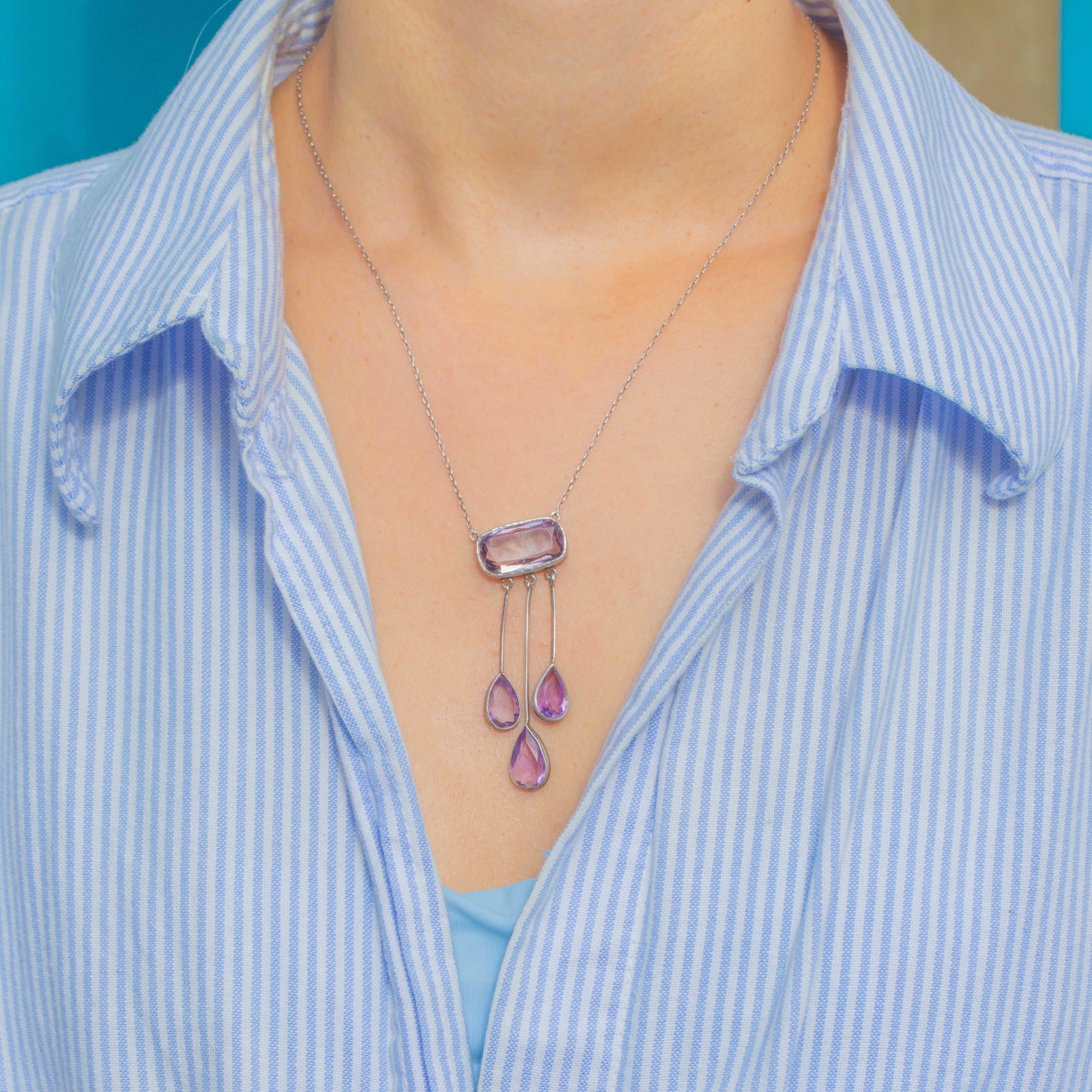 Arts & Crafts Era Silver Amethyst Negligee Drop Necklace c.1905