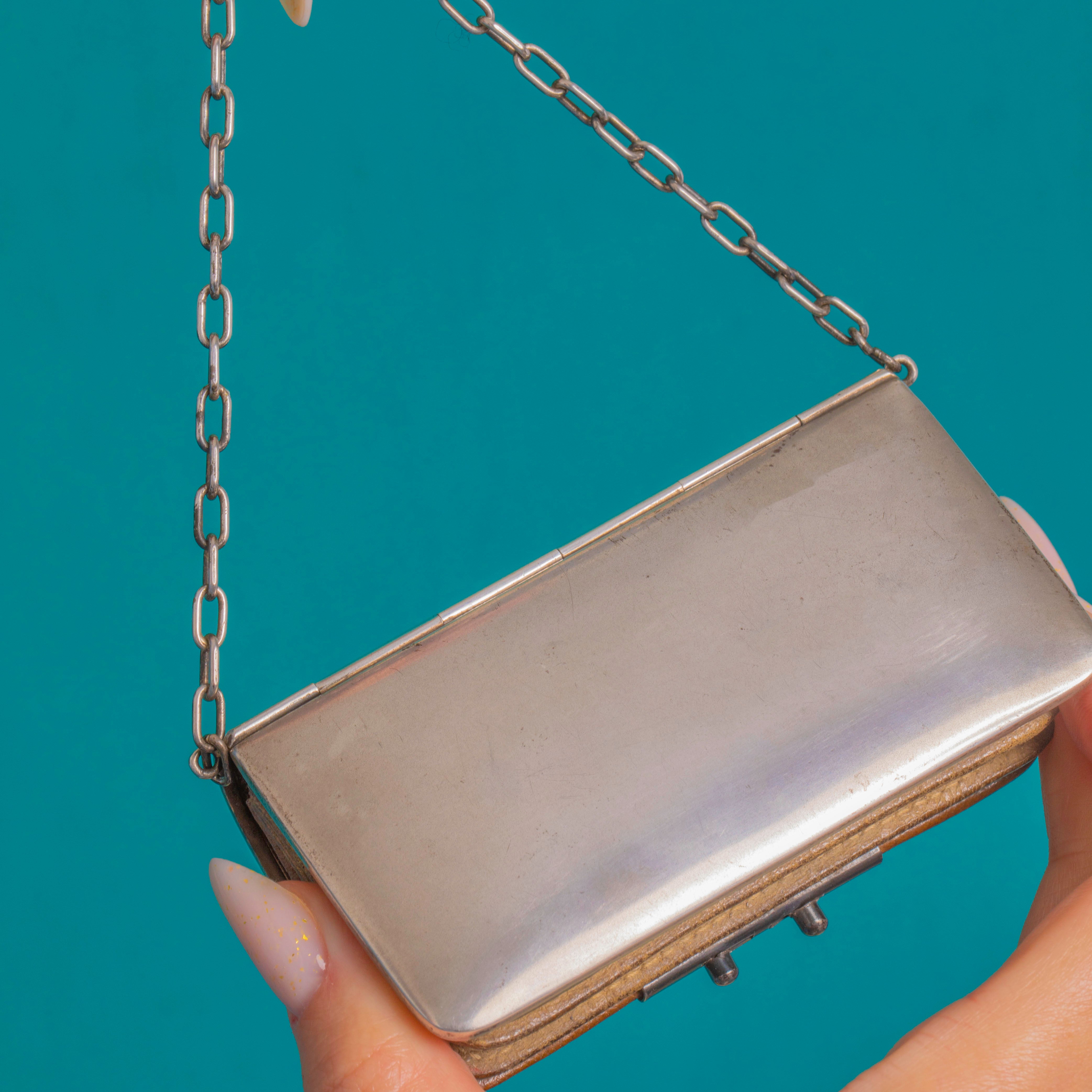 A characterful Arts & Crafts accessory that balances novelty with utility, ready to style on a chatelaine or as a striking conversation piece.