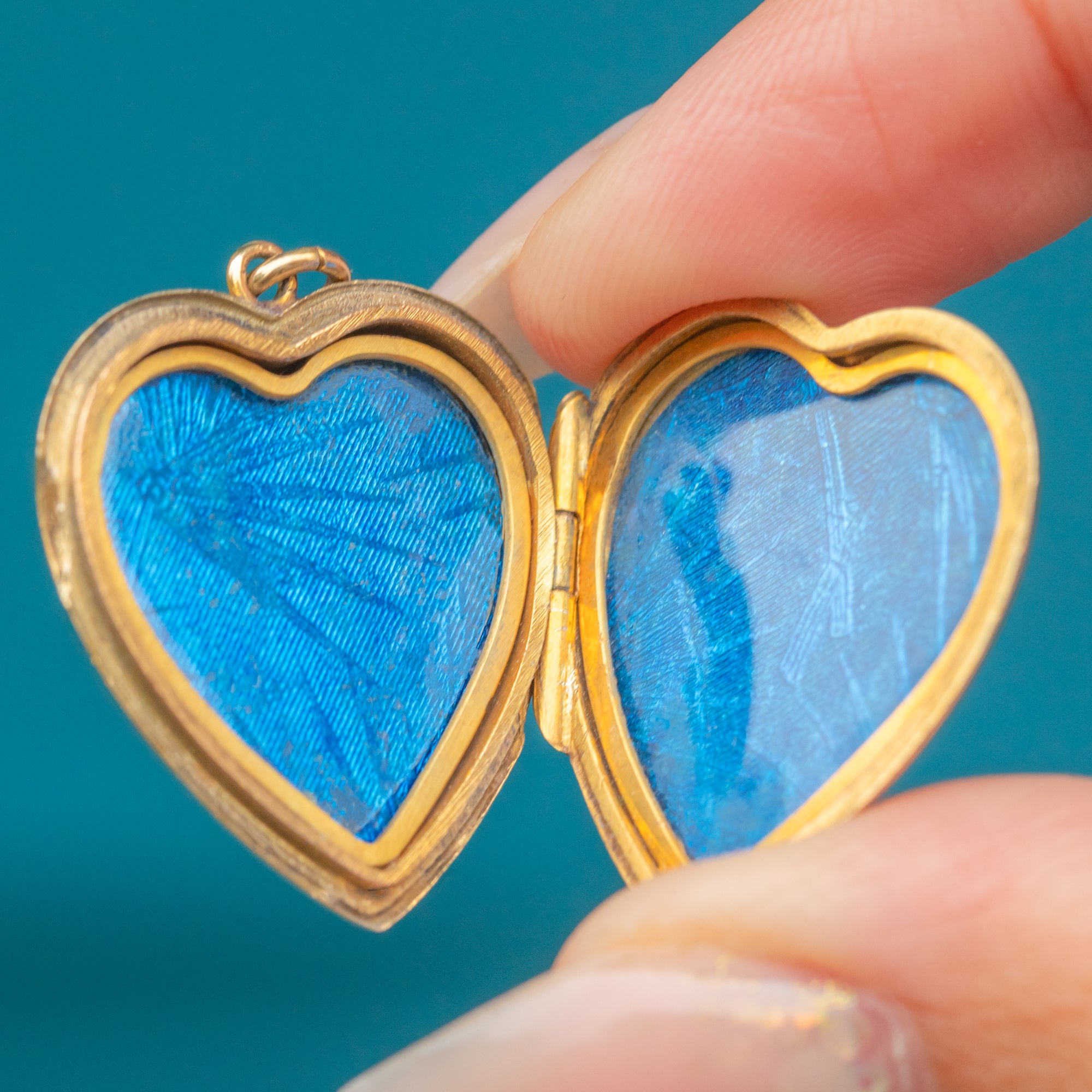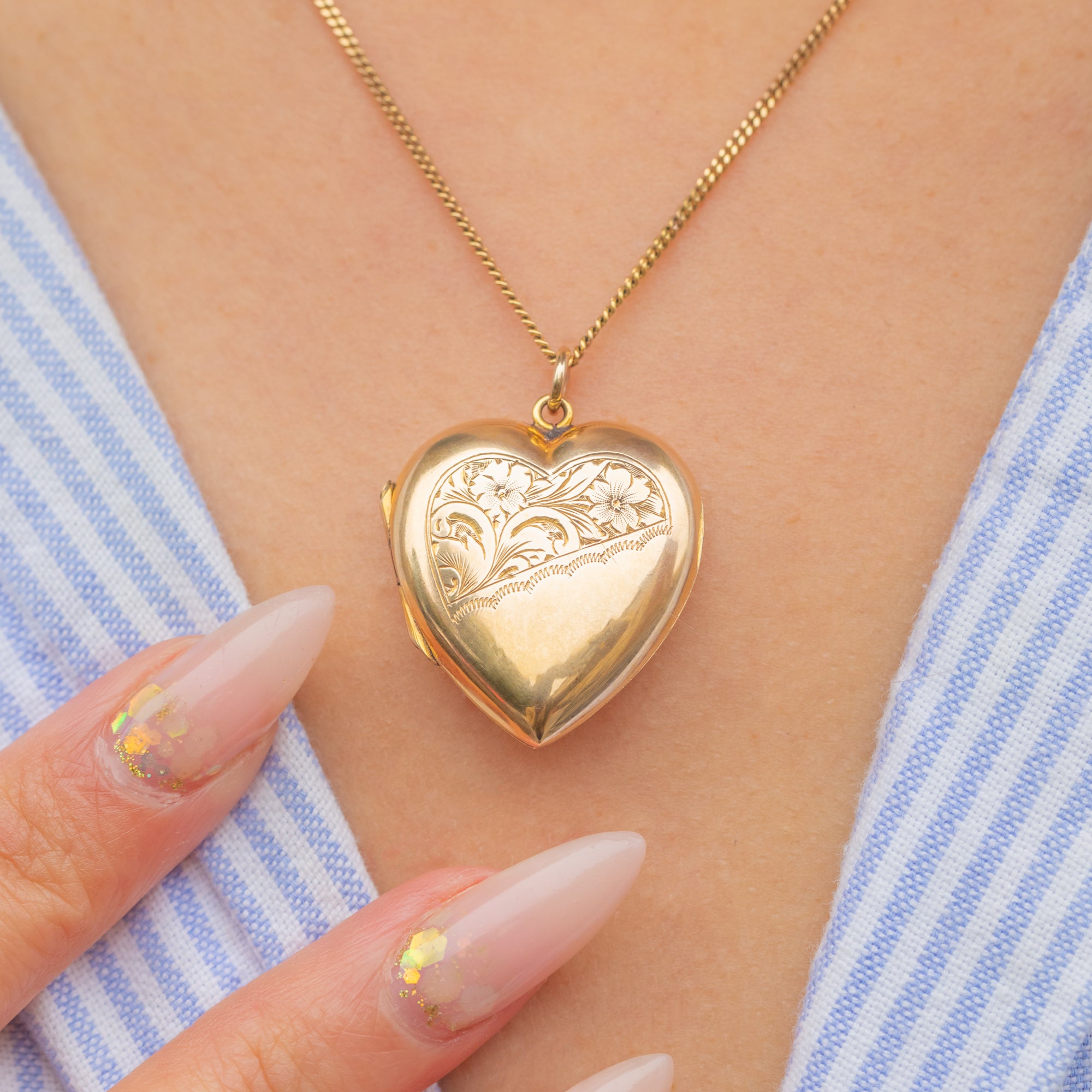 EXCELLENT: The locket is in wonderful condition with no dings or damage. The hand engraving remains crisp, the puffy profile is well-preserved, and both frames are present and intact. The hinge is strong, and it closes securely with a firm click.