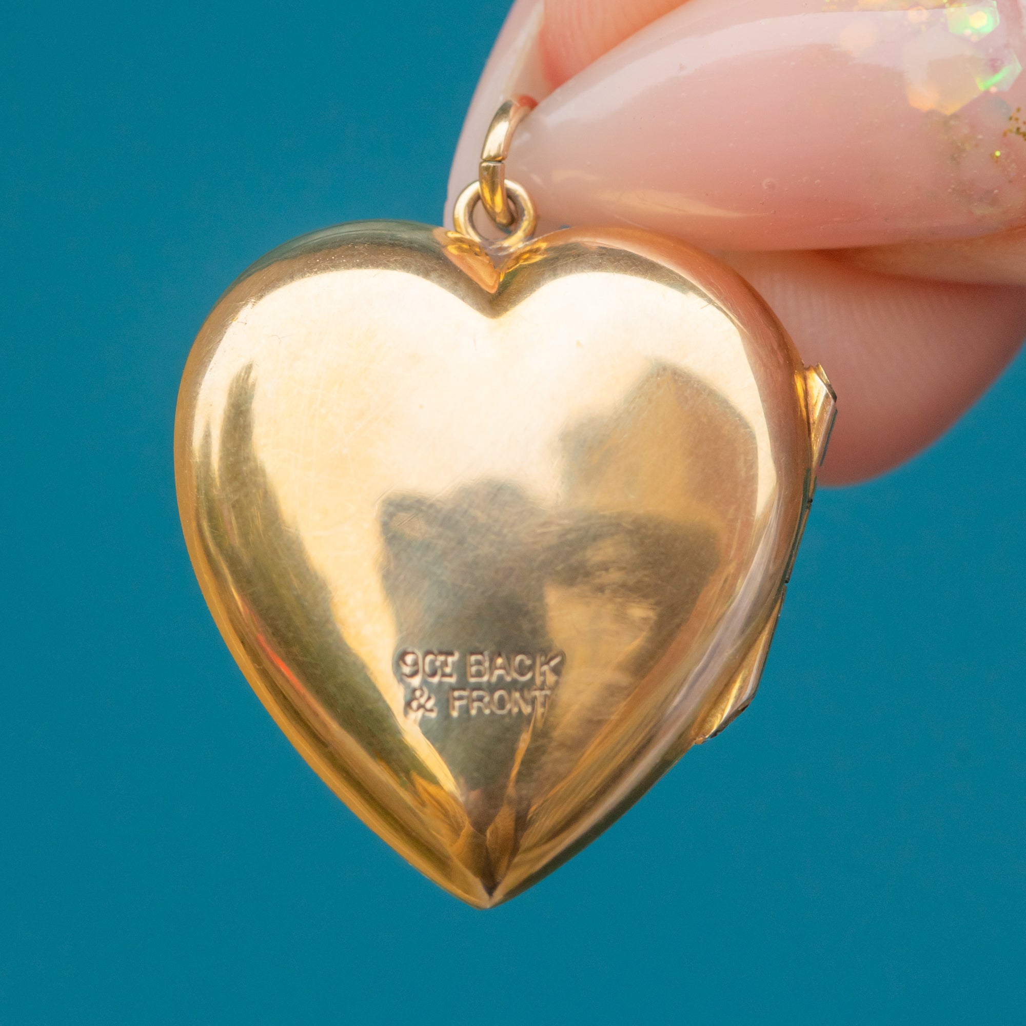 Bright Yellow 9ct Gold Antique Puffy Heart Locket