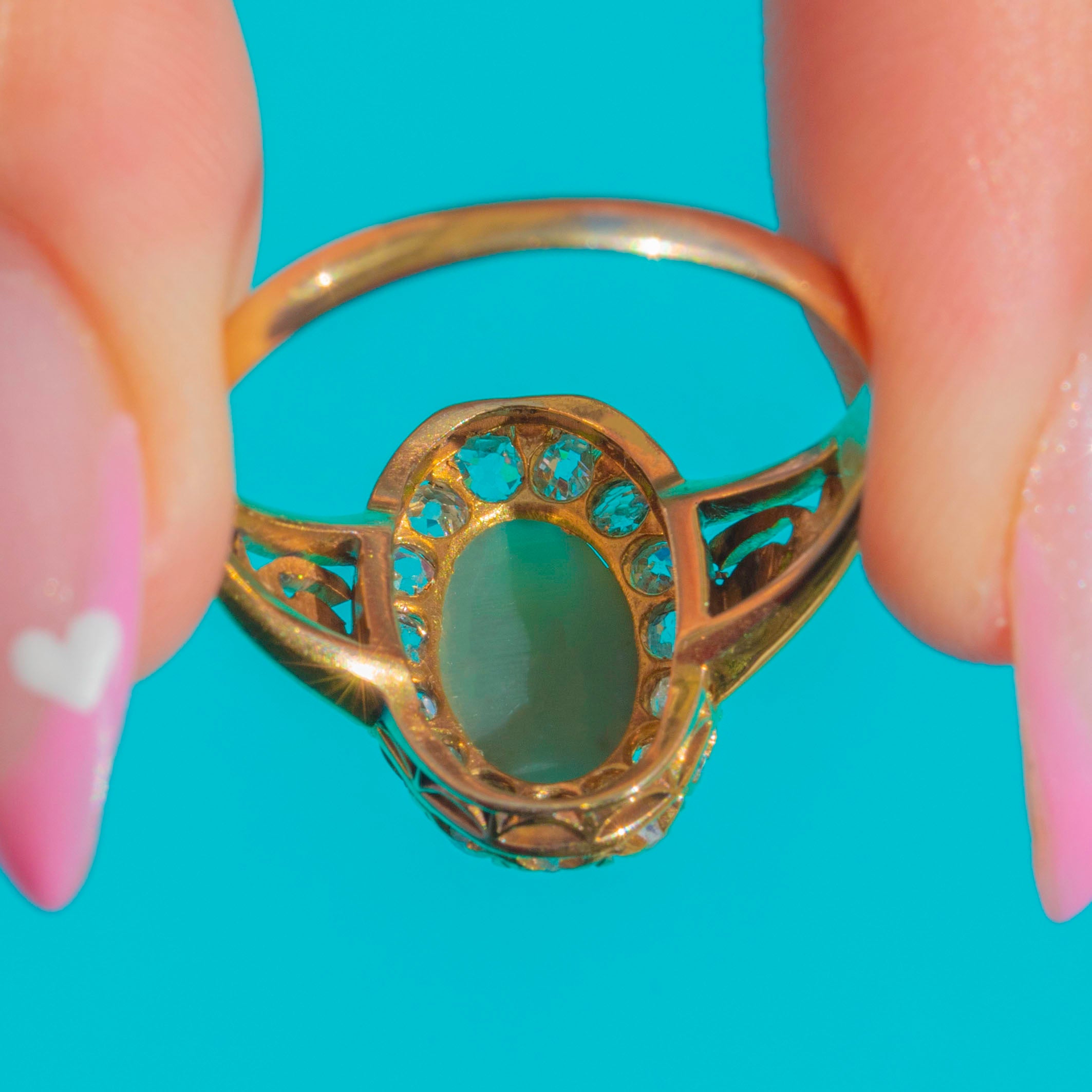 Victorian Cat's Eye Chrysoberyl Diamond Halo Ring in 18ct Gold Item added