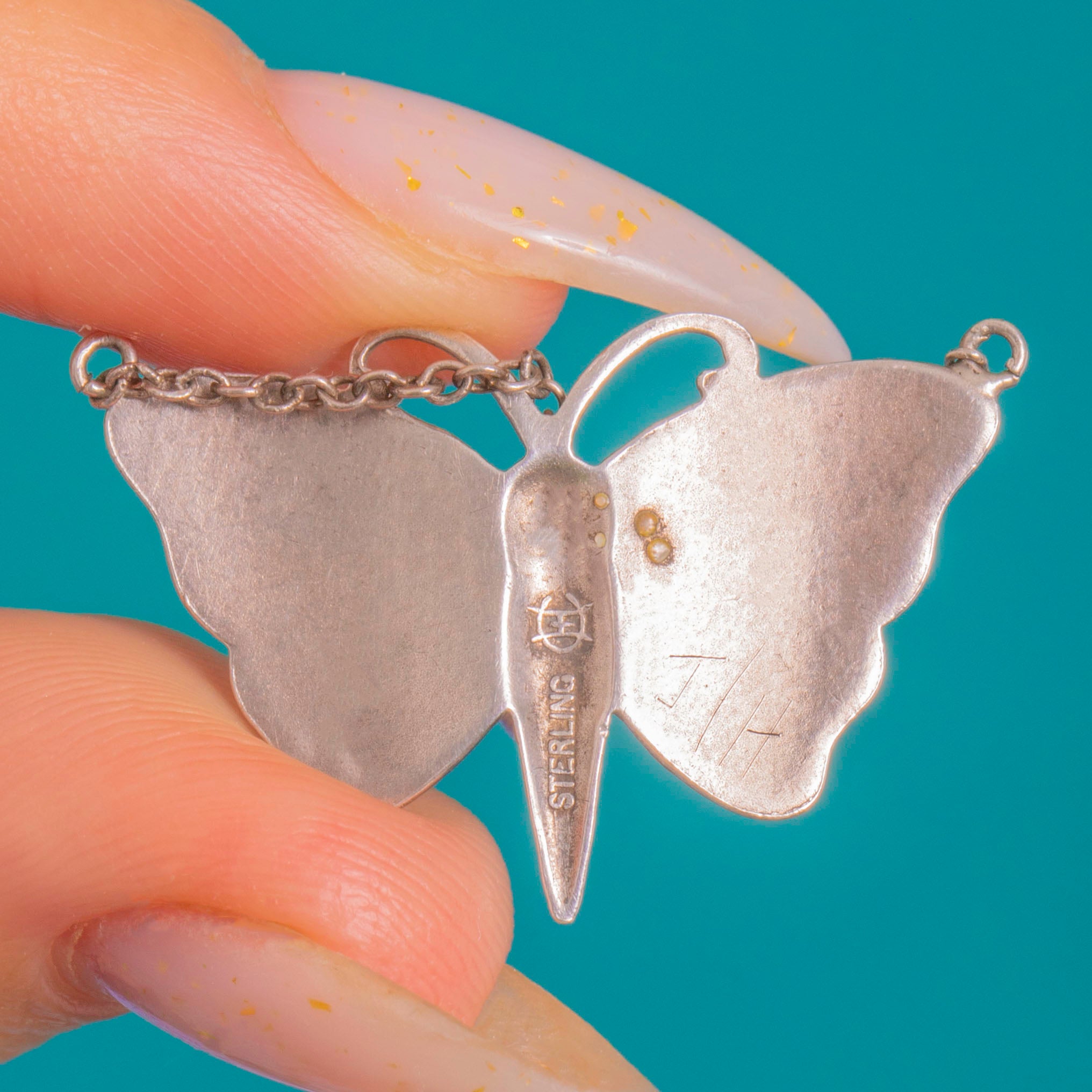 Charles Horner Sterling Silver Blue Enamel Butterfly Pendant c.1920
