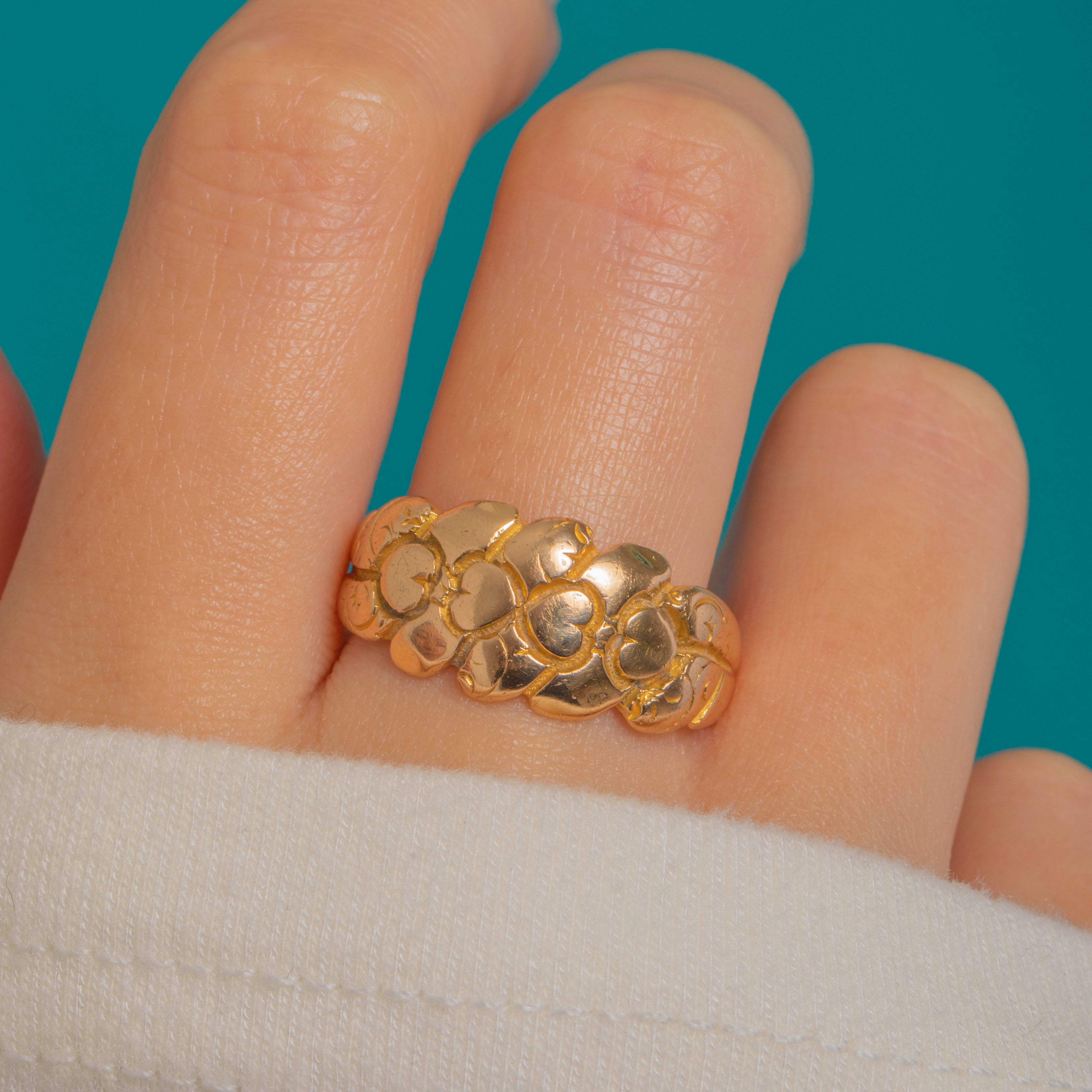 Chunky Antique 18ct Gold Heart Keeper Ring c.1912