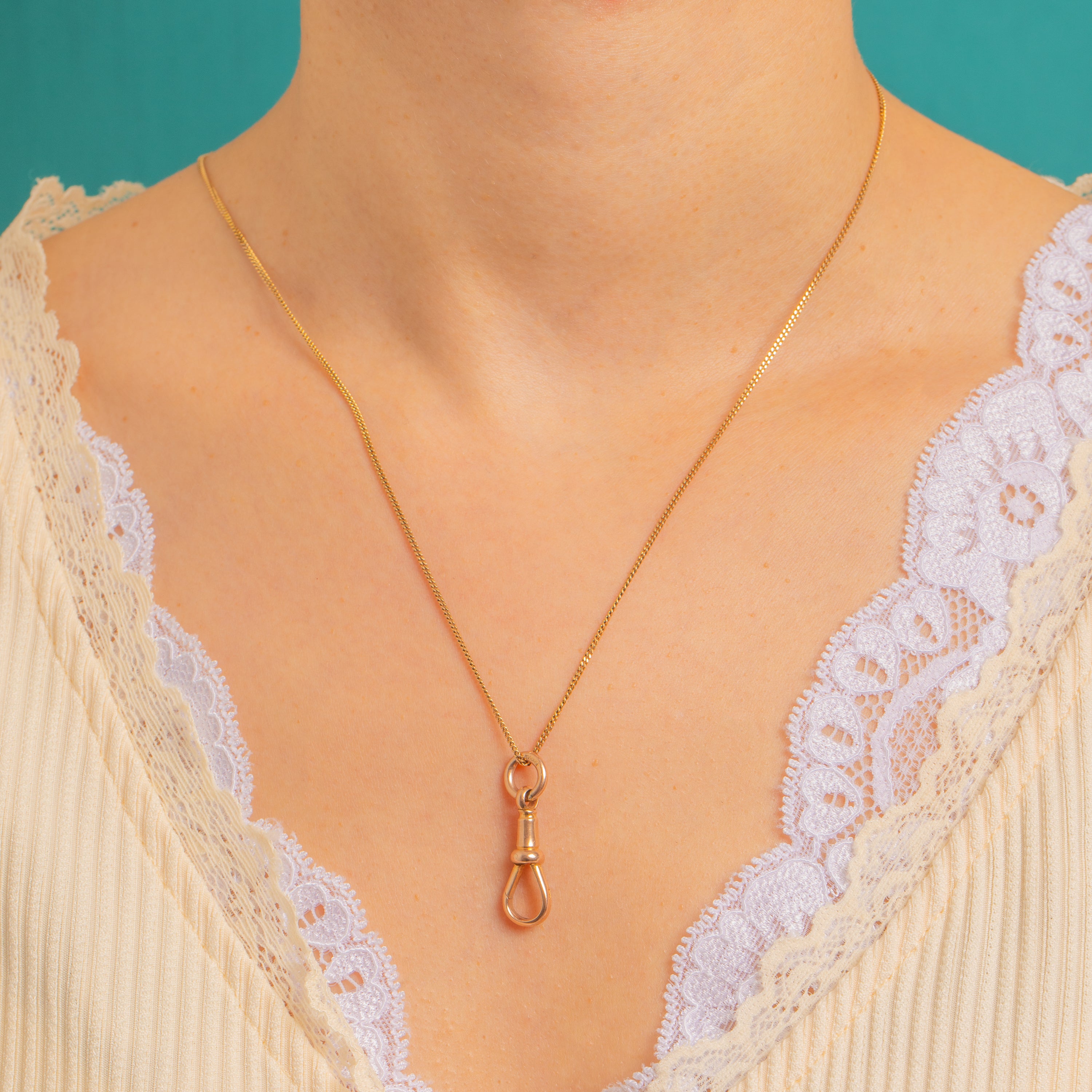 A chunky Victorian 9ct Gold dog clip clasp with the perfect balance of utility and elegance. Its rounded silhouette and turned barrel create that classic watch‑chain aesthetic, reimagined today as a beautifully simple charm or pendant holder.