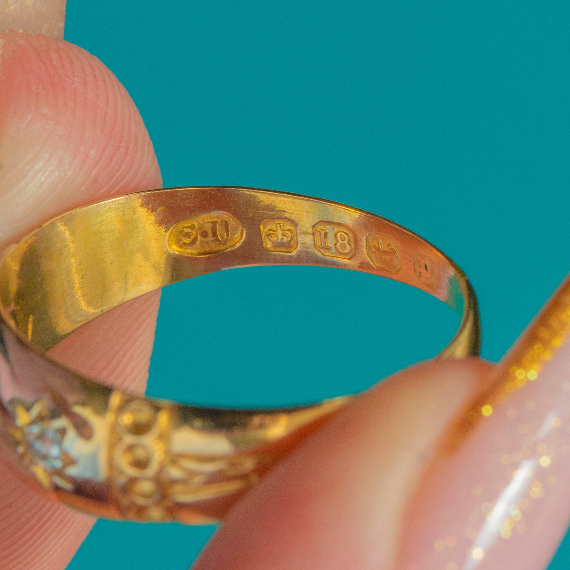 The Gold has that rich, sunny antique tone so characteristic of 19th-century 18ct, complemented by hand-engraved shoulder details that add charm and craftsmanship. Glossy, smooth and wonderfully stylish, it makes a perfect antique stacking ring or standout everyday piece.