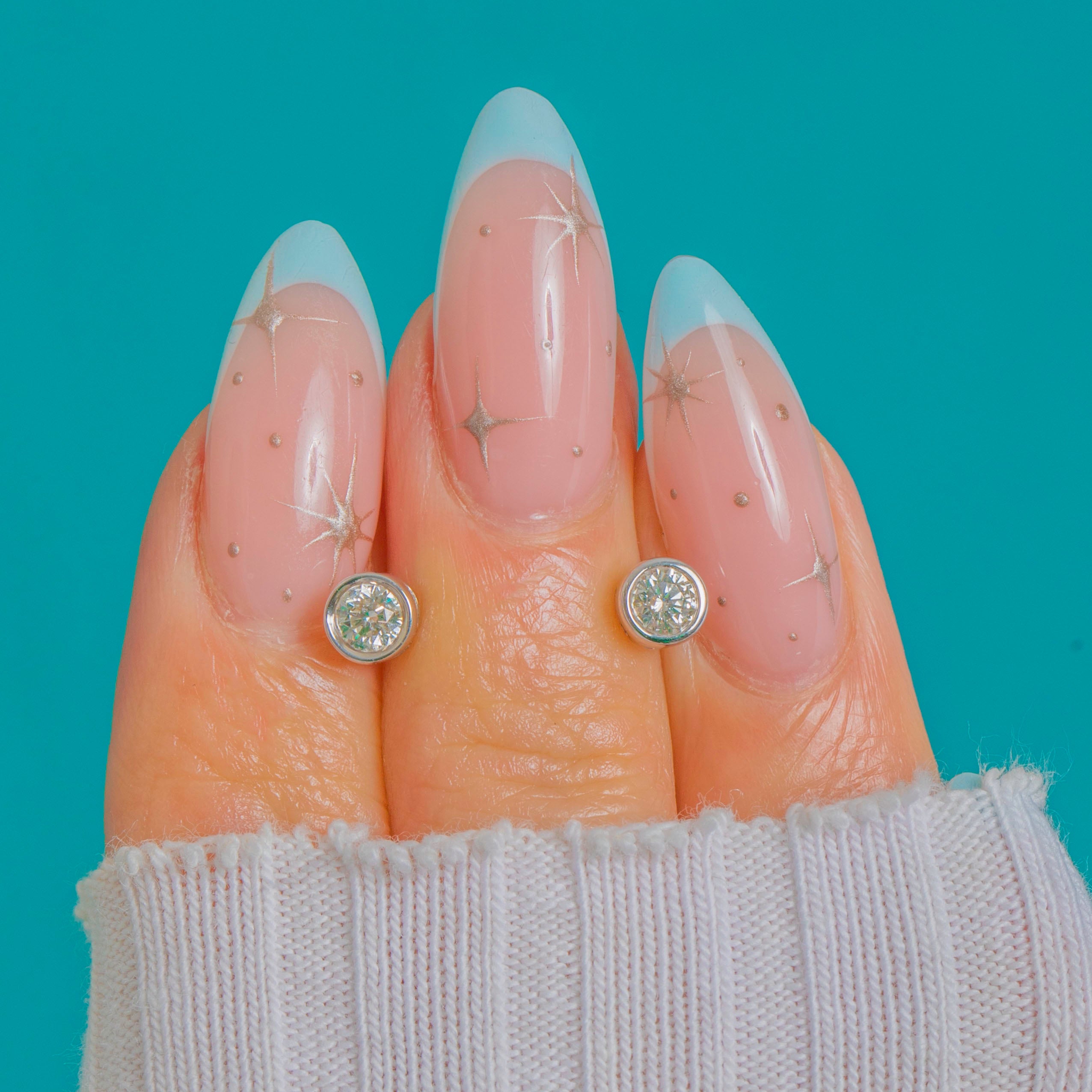 MEASUREMENTS: Diamonds measure approx. 3mm in diameter.