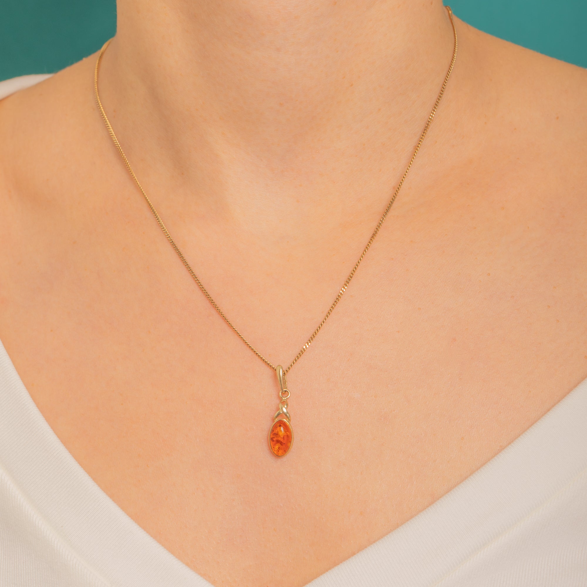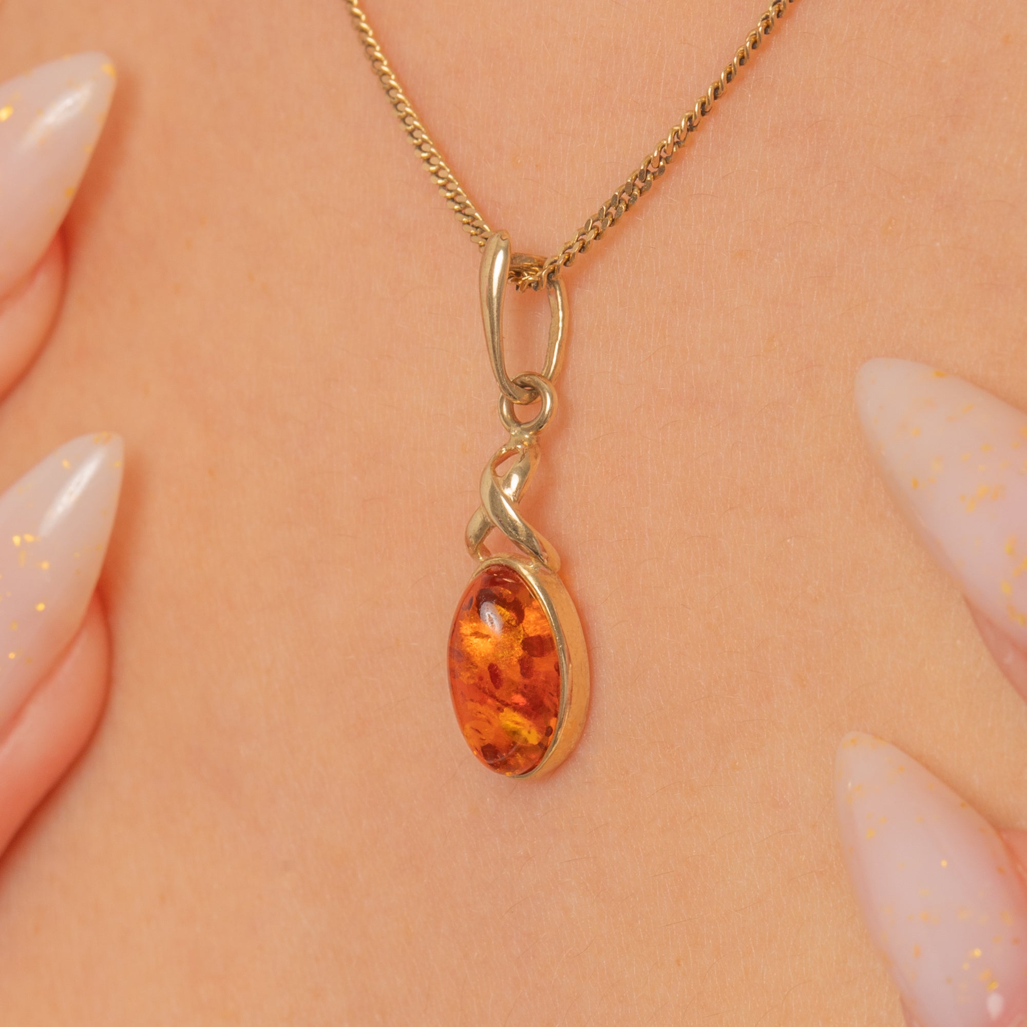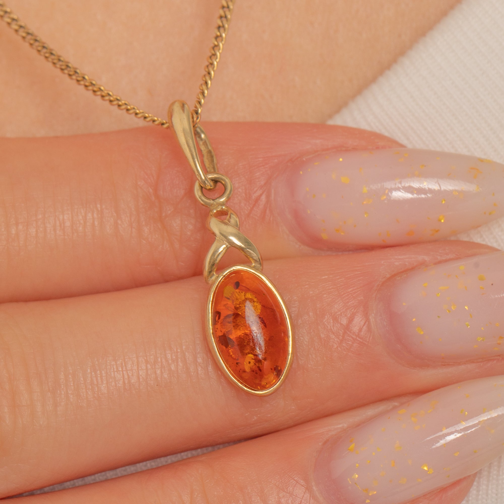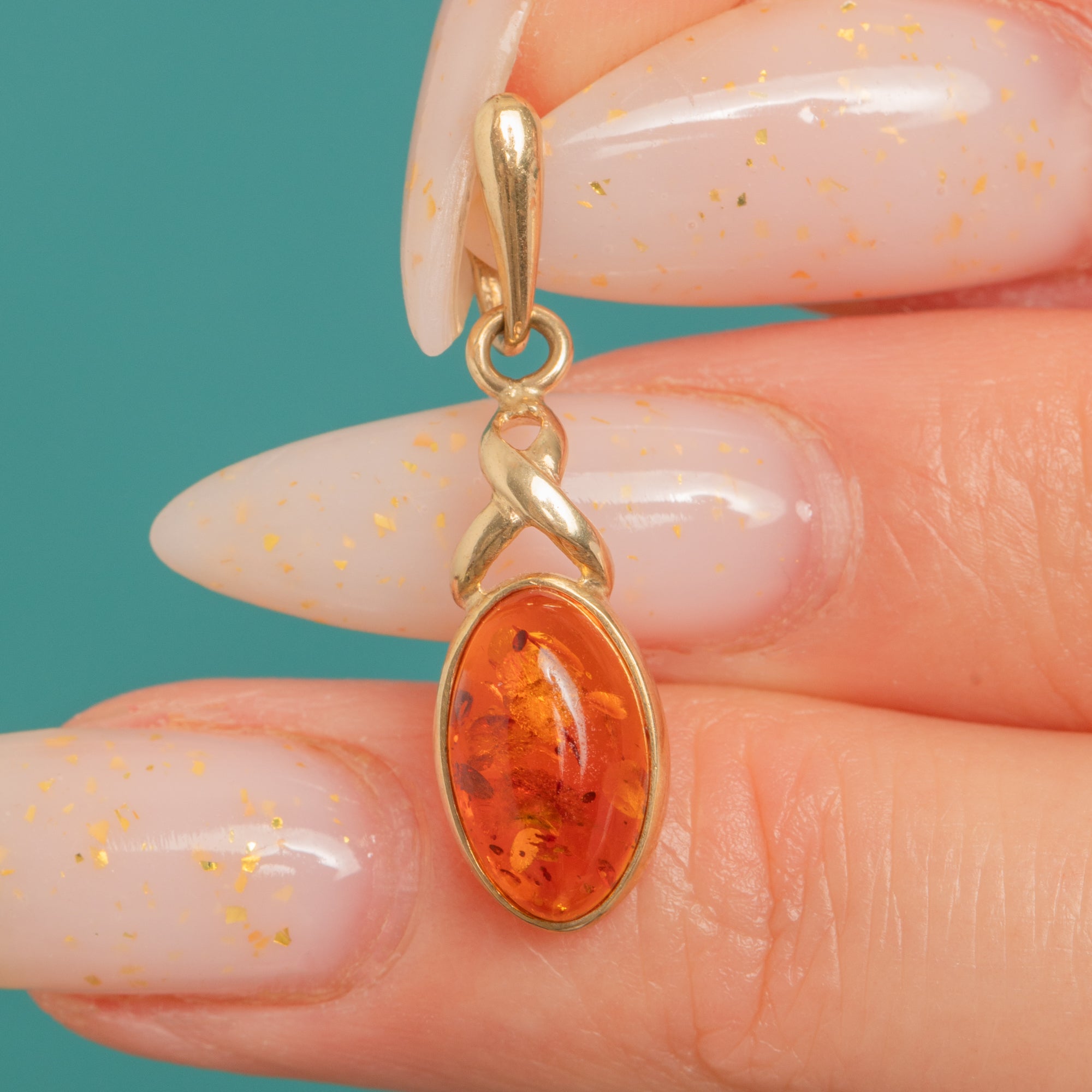 EXCELLENT: The Amber cabochon is smooth and glossy with only light surface wear visible under magnification, and no chips or cracks. The 9ct Gold bezel and bale are bright with minimal surface marks, secure and well‑finished. No signs of repair or alteration.