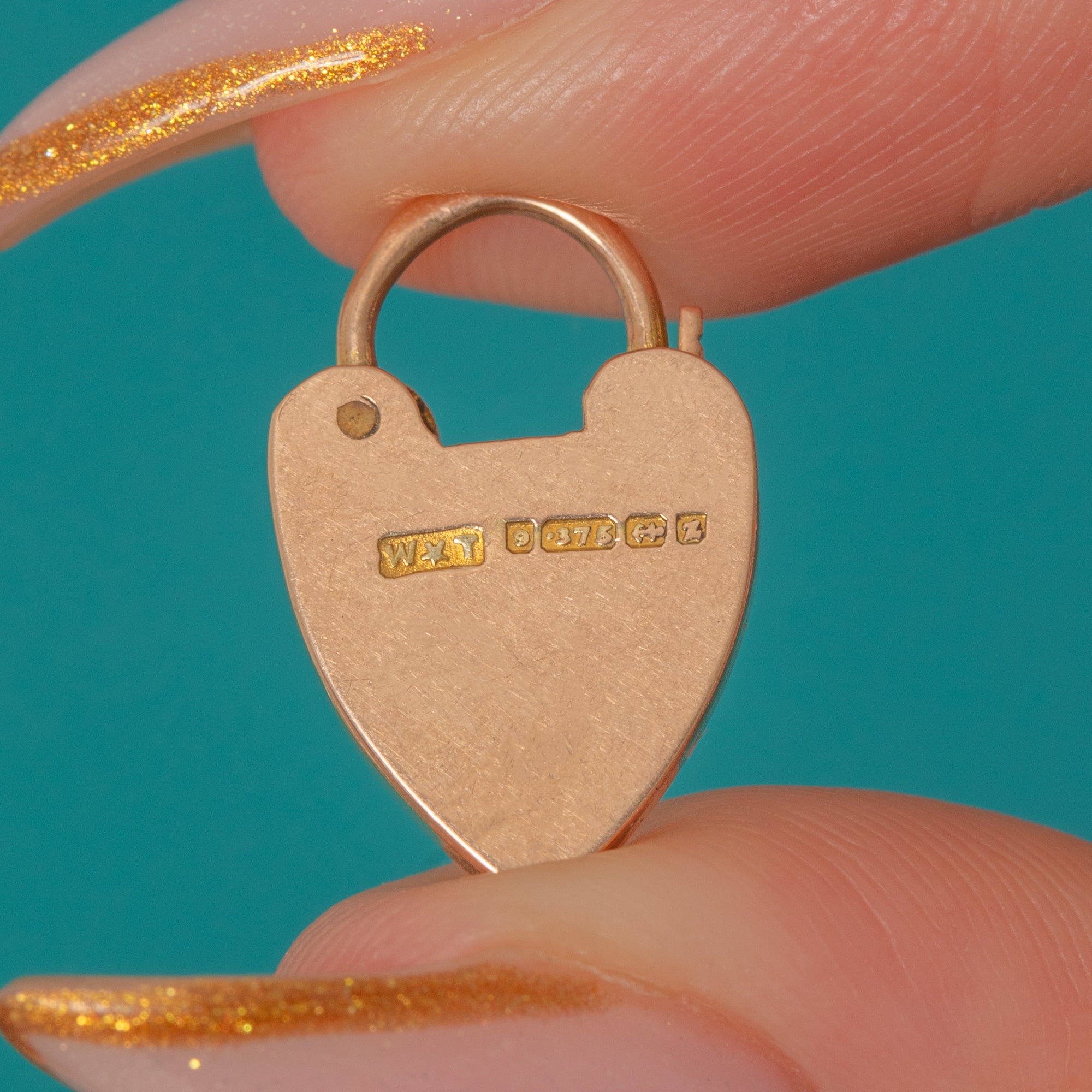 This dainty Late Victorian heart padlock charm is a beautifully preserved example of a classic antique design. Fully hallmarked to the front with a crisp Birmingham assay set for the year 1899, it has all the charm and authenticity collectors adore. The heart form is sweet and symbolic, crafted in solid 9ct Gold with a lovely warm antique glow.