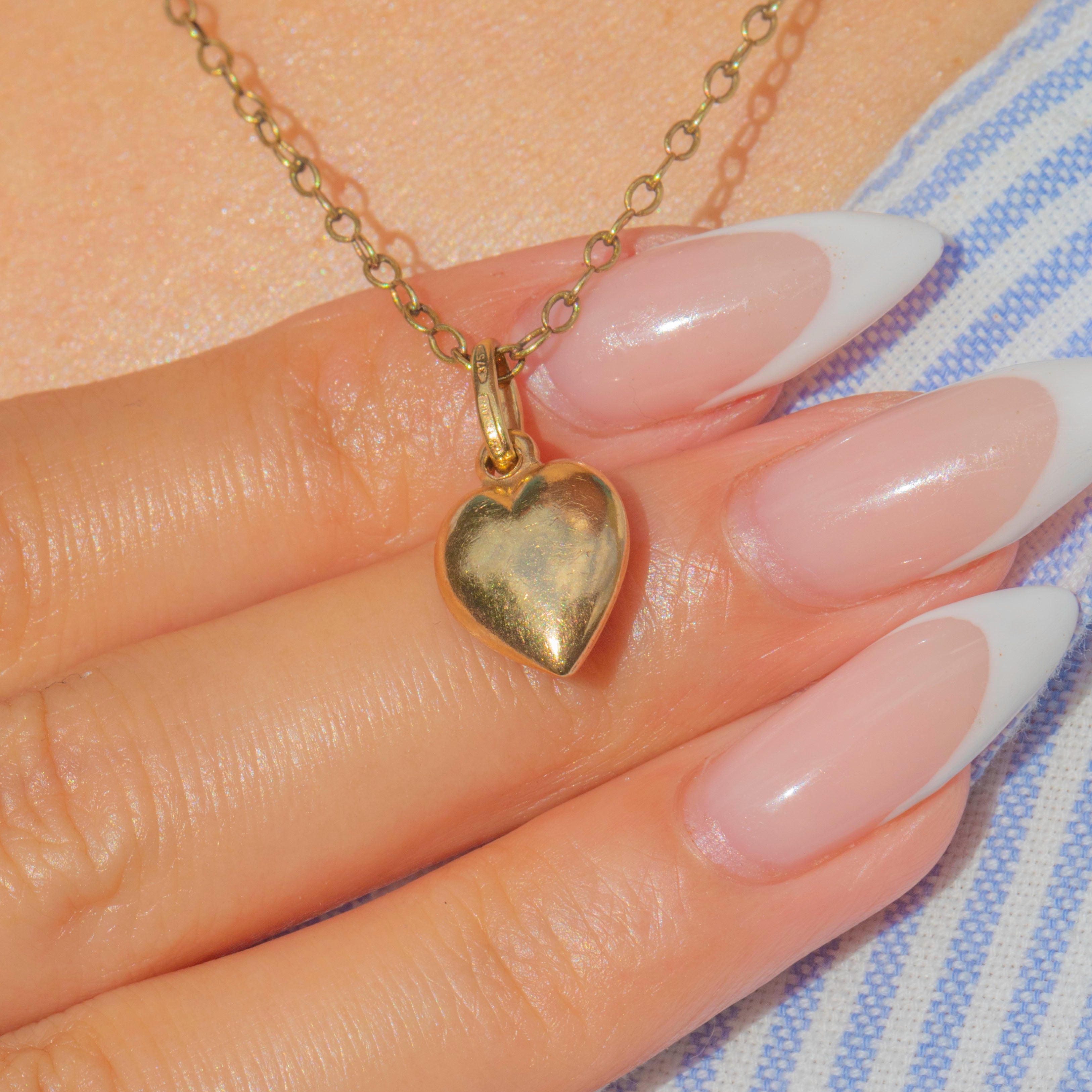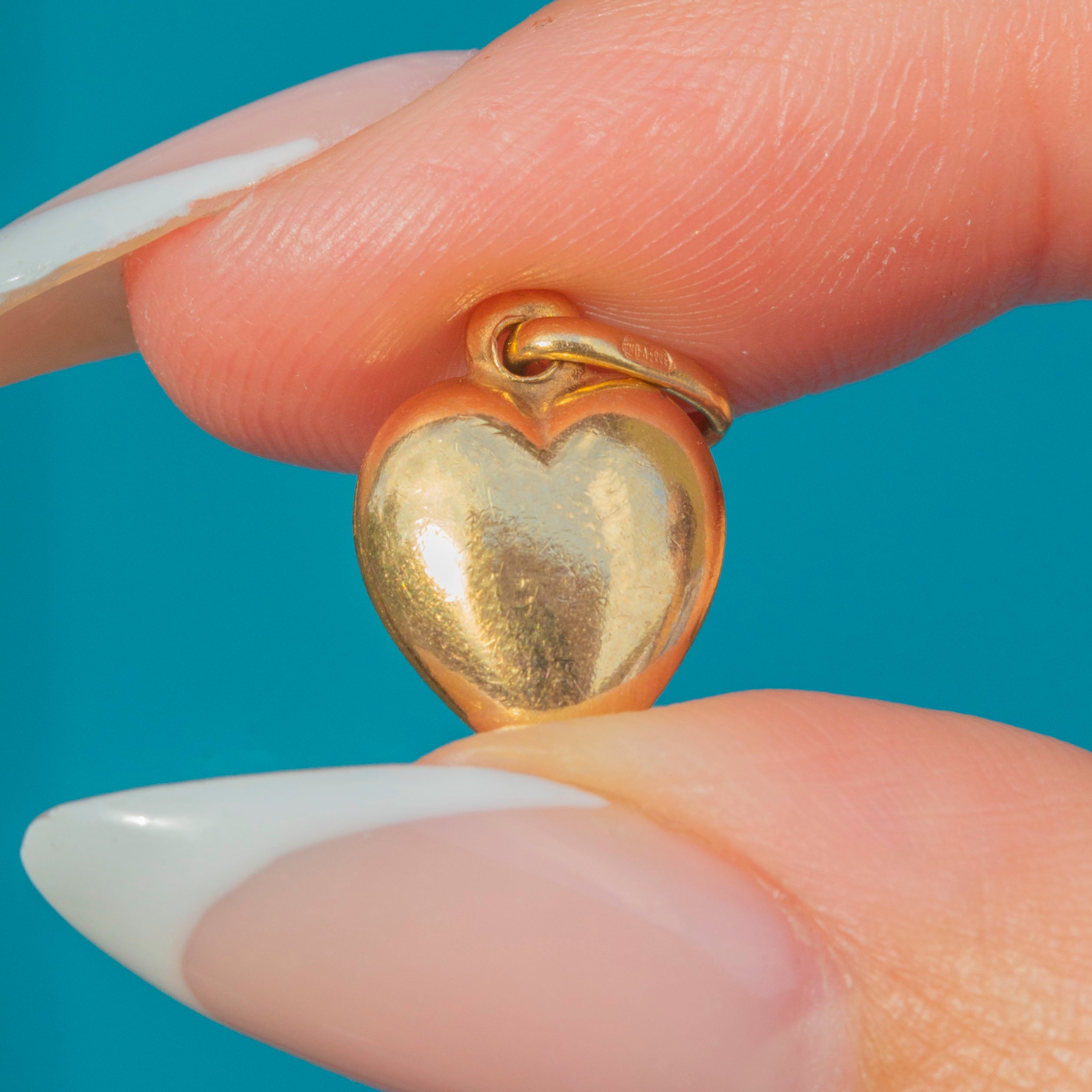 This dainty Vintage Gold puffy heart charm is a sweet and timeless piece of mid 20th-century design. Puffy hearts are enduringly popular motifs, loved for their soft curves and romantic symbolism, and this one comes from the renowned Italian maker Unoaerre.
