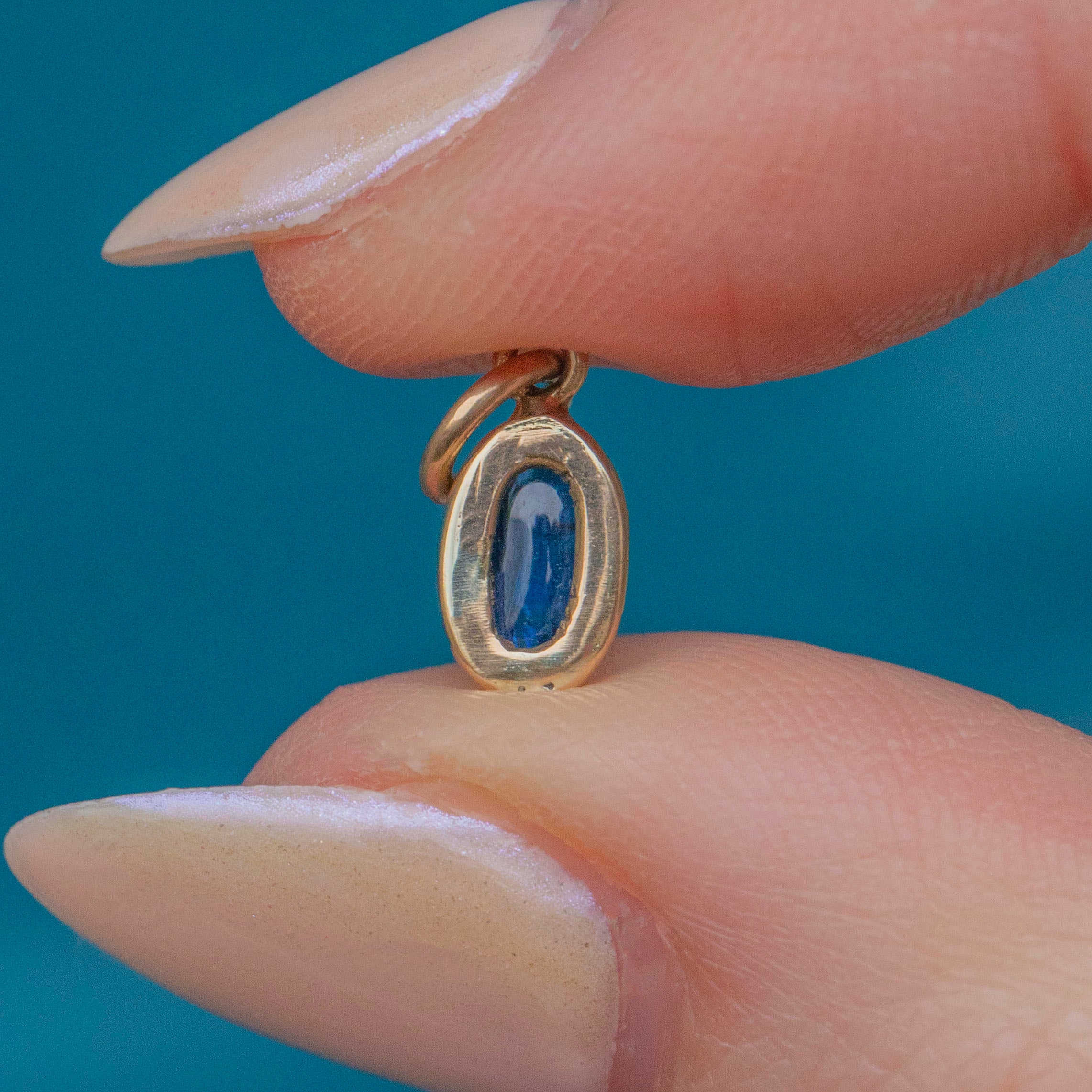 Dainty 9ct Gold Sapphire Cabochon Charm, 0.25ct