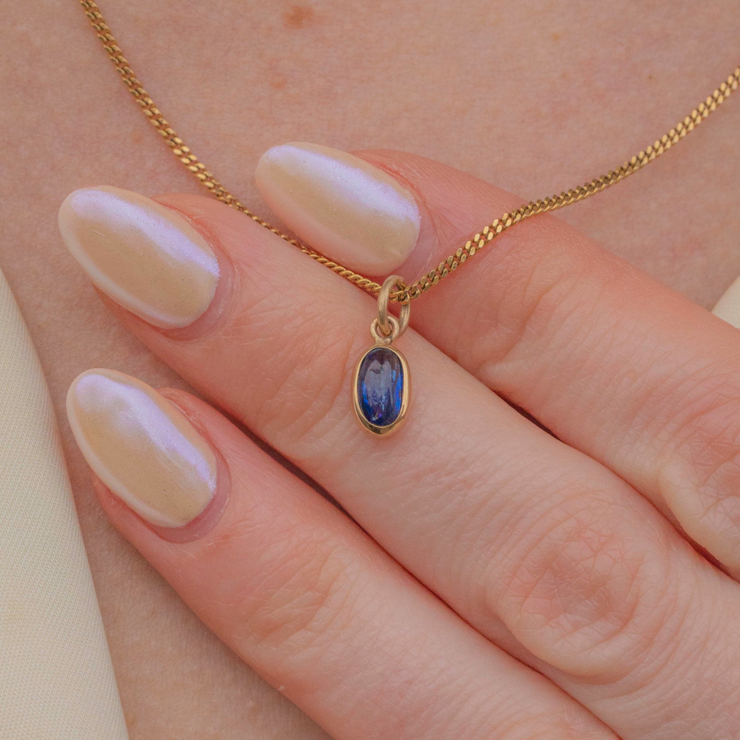 This dainty 9ct Gold Sapphire cabochon charm is a great option to add a sophisticated pop of colour to your collection!