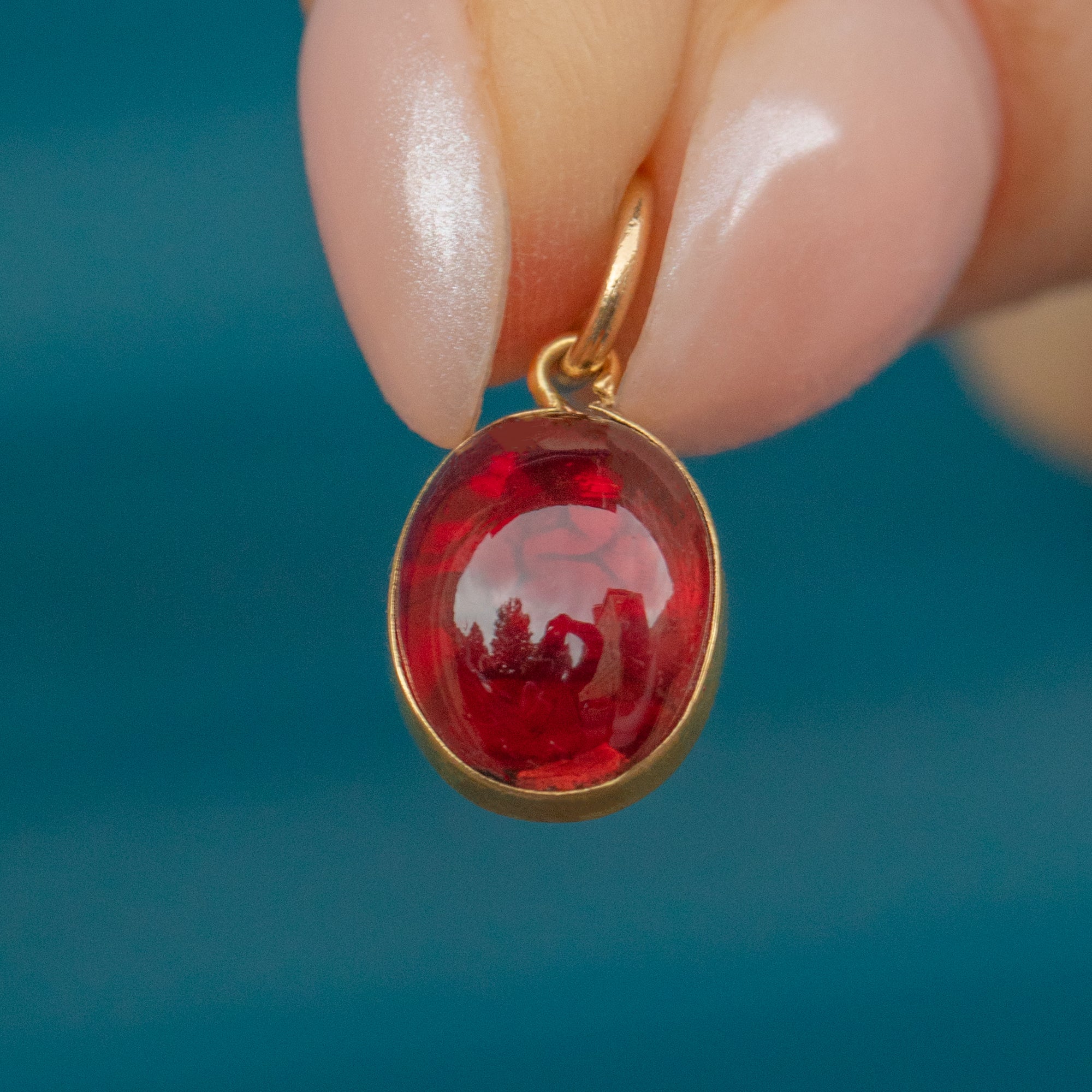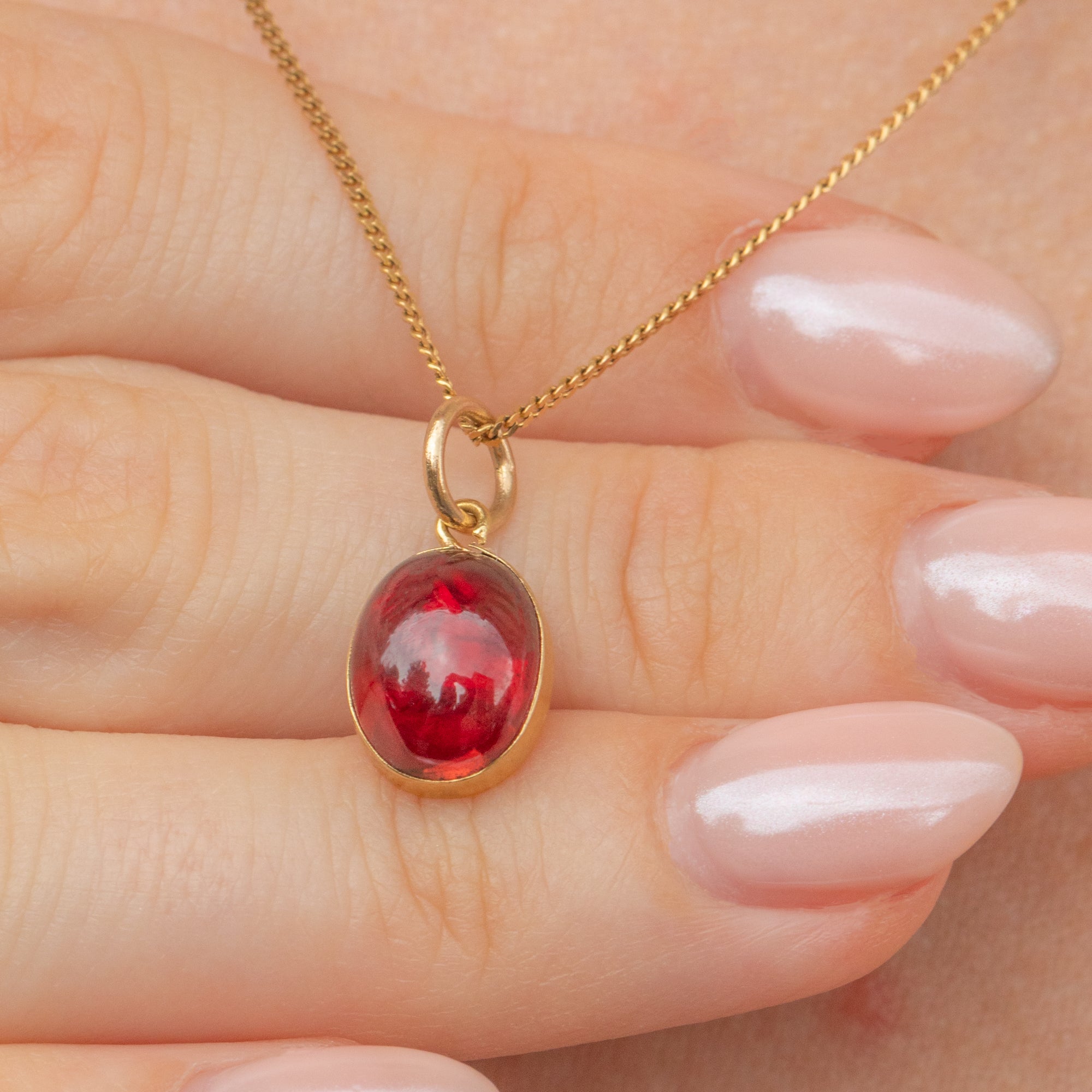 Transport yourself to the Victorian era with this exquisite antique 18ct Gold Garnet cabochon charm! The deep and richly saturated 3.15ct Garnet is accentuated by the warm glow of the Gold, creating a captivating piece that almost looks good enough to eat!