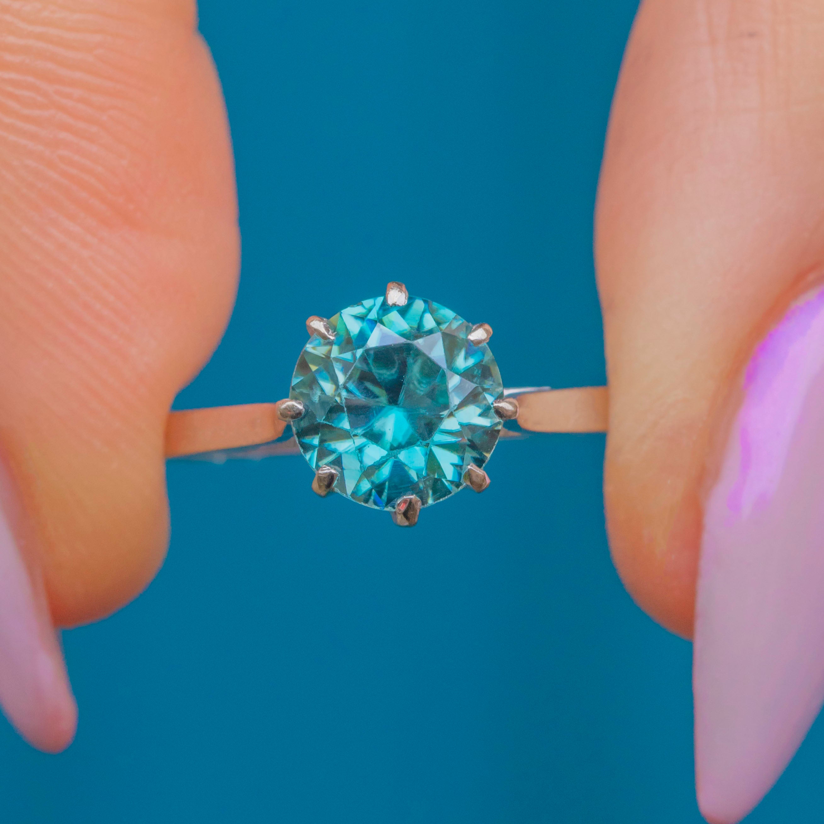 This elegant Art Deco ring is crafted in solid 18ct White Gold and set with a vivid blue 1.00ct Zircon, prized for its dazzling brilliance and rich colour. The Zircon’s radiant sparkle and cool hue are beautifully complemented by the sleek simplicity of the White Gold mount — an effortlessly sophisticated design from the 1930s.