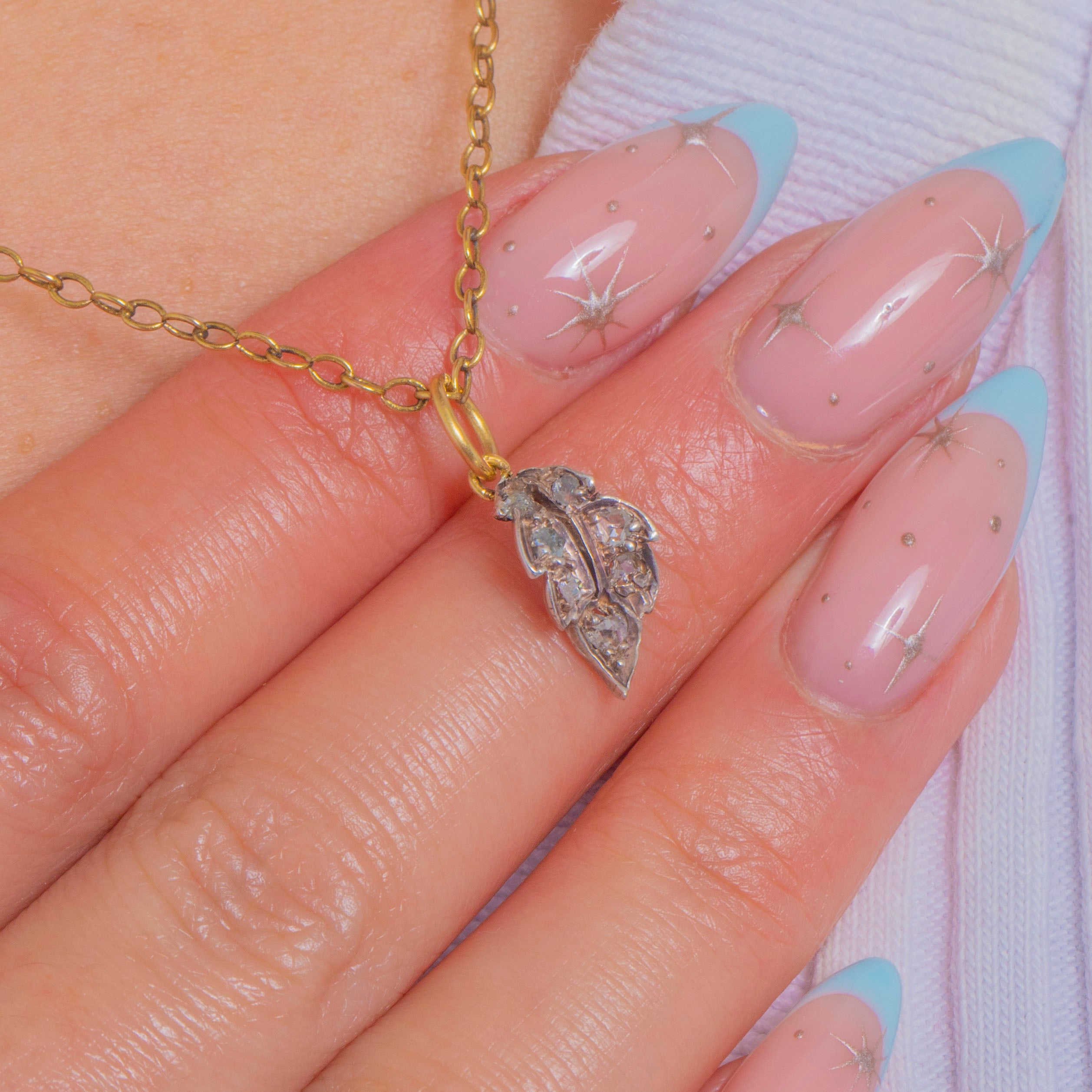 Dainty Rose-Cut Diamond Leaf Charm