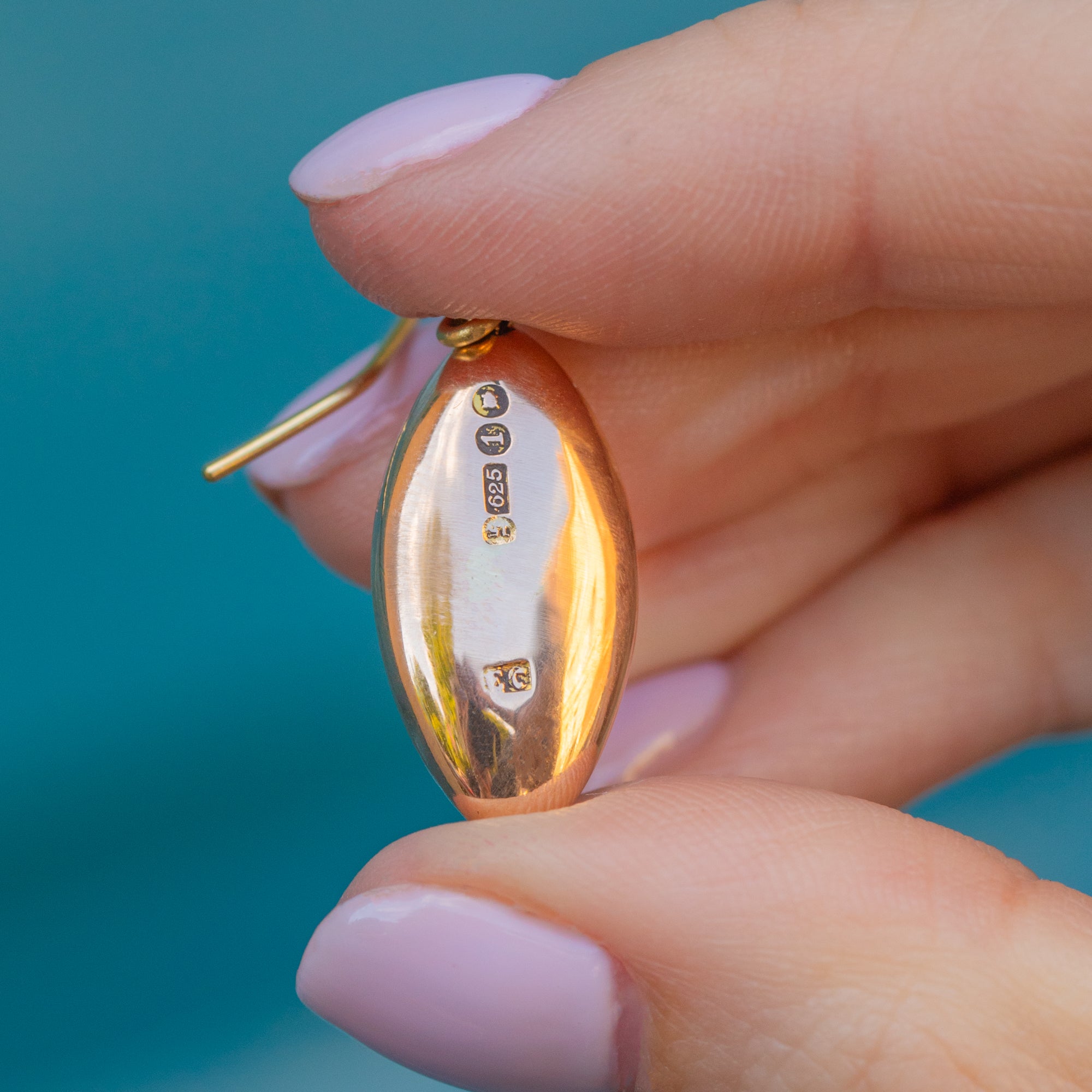 Suspended from 18ct Gold hooks, these antique Gold earrings dance beneath your lobes and would make a welcomed addition to any ear stack. Turn these lovely ladies over and enjoy their full set of English hallmarks dating back to 1906!