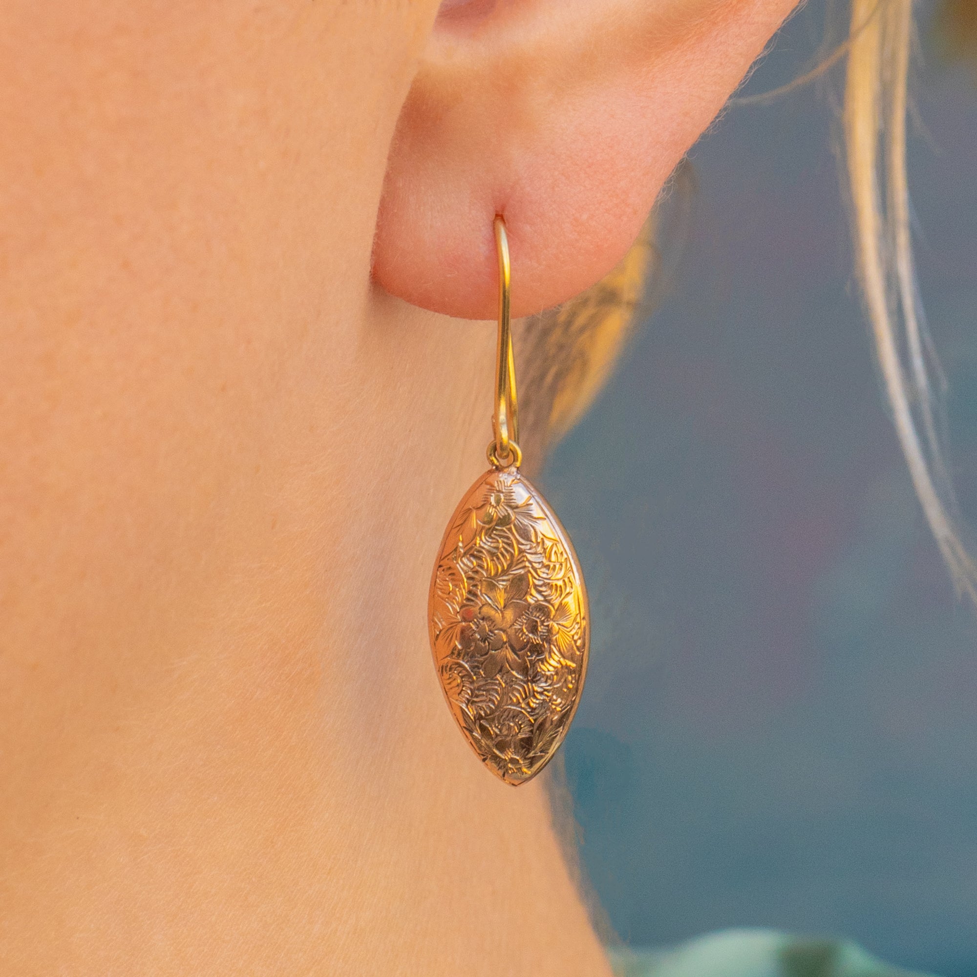 Edwardian 15ct Gold Engraved Lozenge Earrings