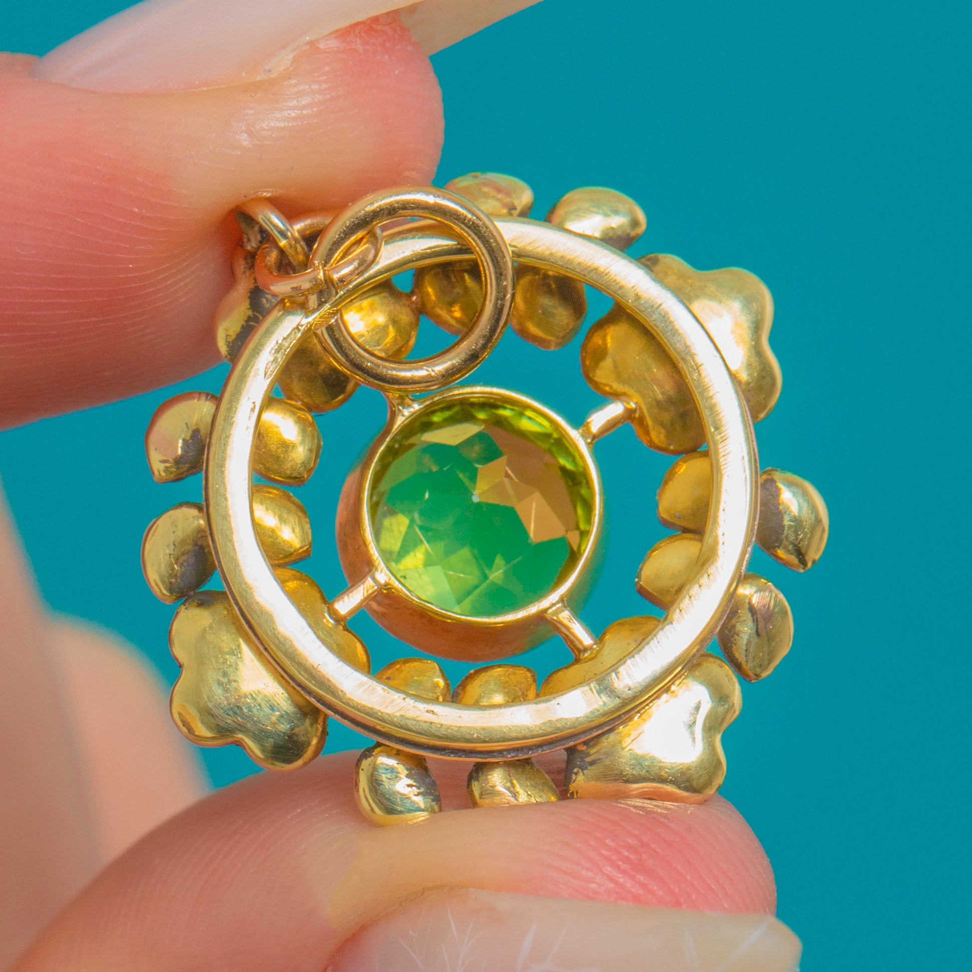 MATERIALS: Tests as 18ct Gold, Peridot (1.80ct), Seed Pearl.